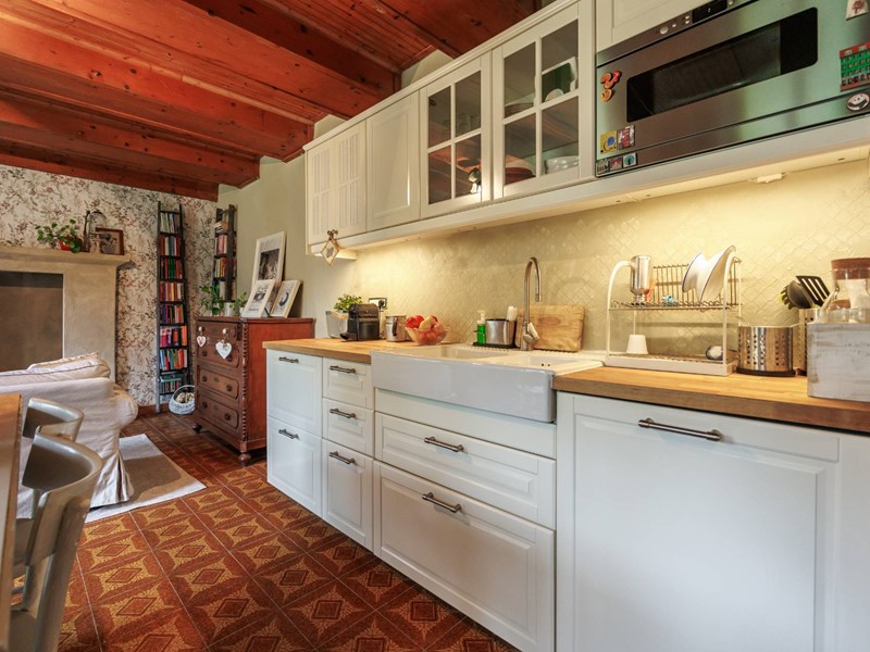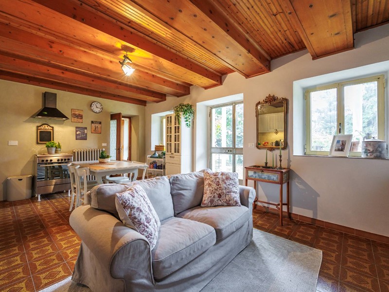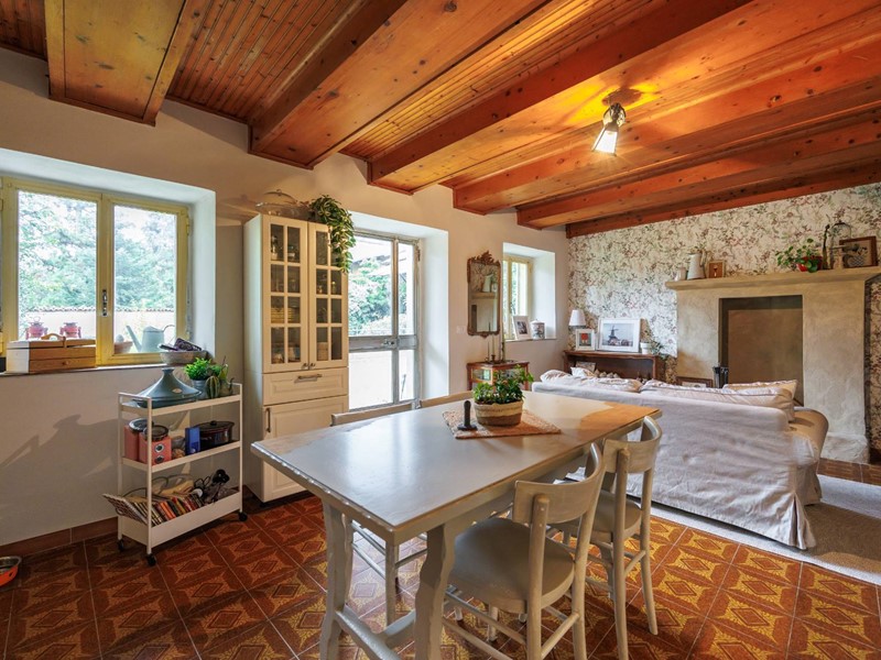 La prima parte della proprietà è frutto di una recentissima ristrutturazione parziale ed è dotata di impianto a gas metano e impianto idraulico che la rendono abitabile fin da subito, un'entrata sul disimpegno, con a sinistra la zona giorno caratterizzata da un'uscita sul giardino, rende l'ampio salone con cucina a vista luminoso e comfortevole. Una scala che collega il piano attuale alle due camere da letto con bagno e grande terrazzo poste al piano superiore e, sulla destra invece, il primo bagno e l'accesso a due locali di circa 20mq ciascuno, liberamente adattabili.