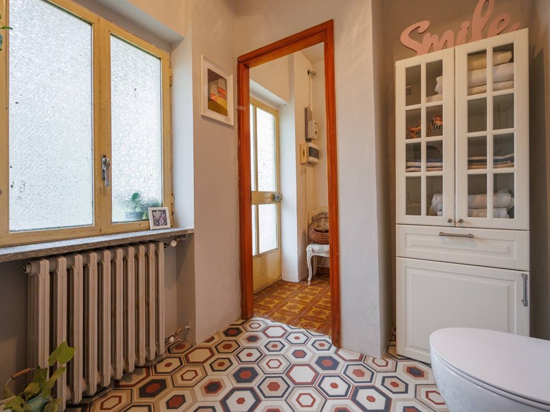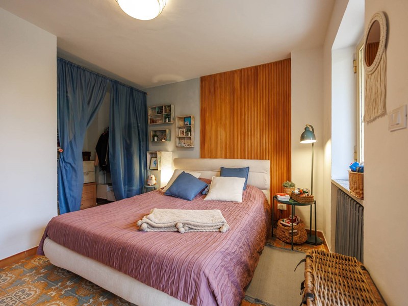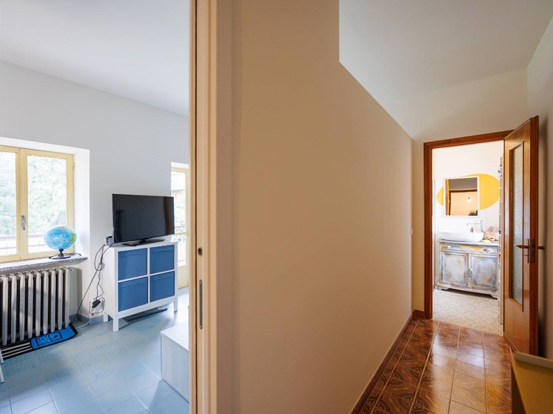 La seconda parte della proprietà anch'essa con ingresso su disimpegno e scala, offre sulla destra un locale di circa 20mq collegabile al salone dell'altra unità, un ripostiglio e, al piano superiore, una camera con terrazzino annesso.