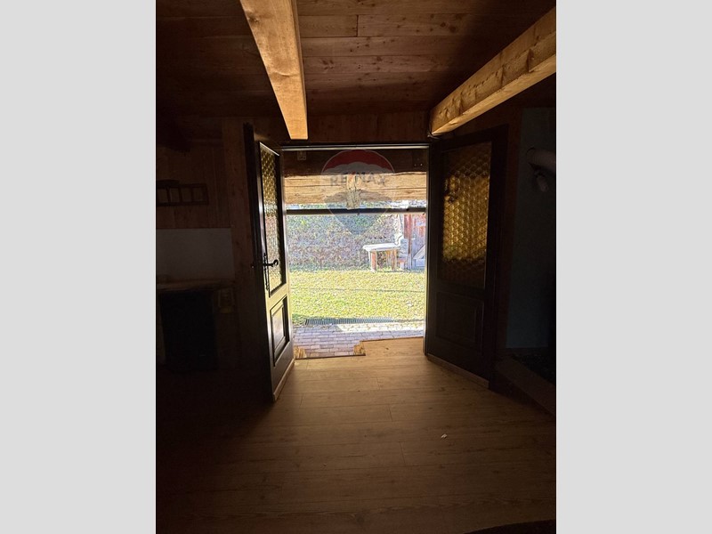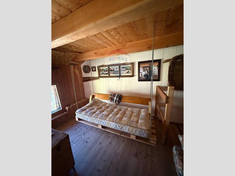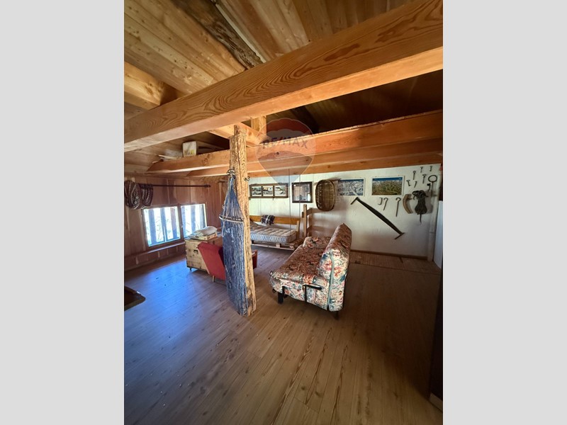 Gli infissi e le finestre, anch'essi in legno, conferiscono alla baita un'atmosfera calda e rustica, perfetta per chi cerca una fuga dalla vita frenetica della città, desidera rilassarsi e godere della vista mozzafiato sulle montagne circostanti. L'interno della baita è parzialmente arredato.