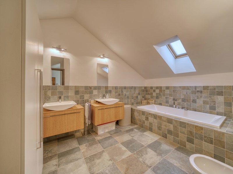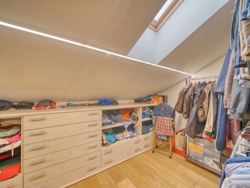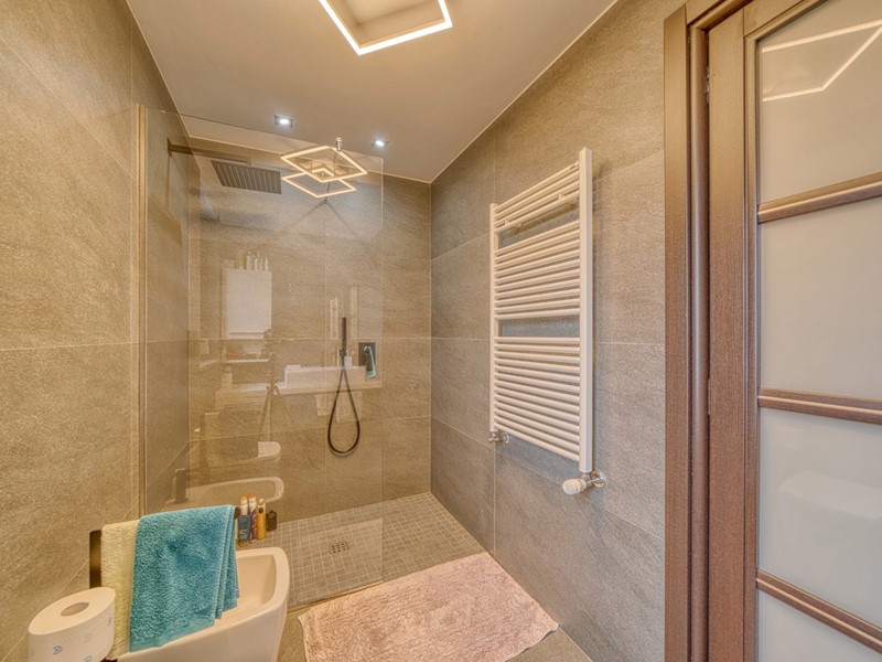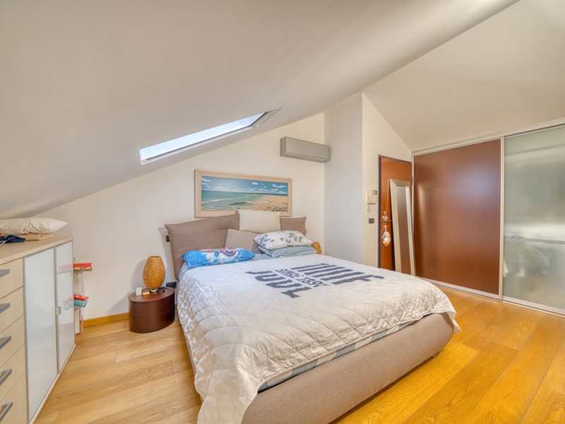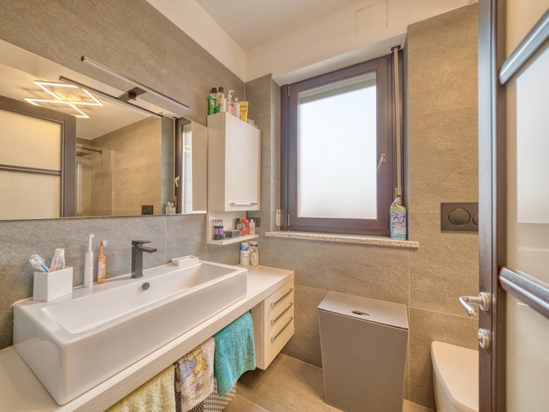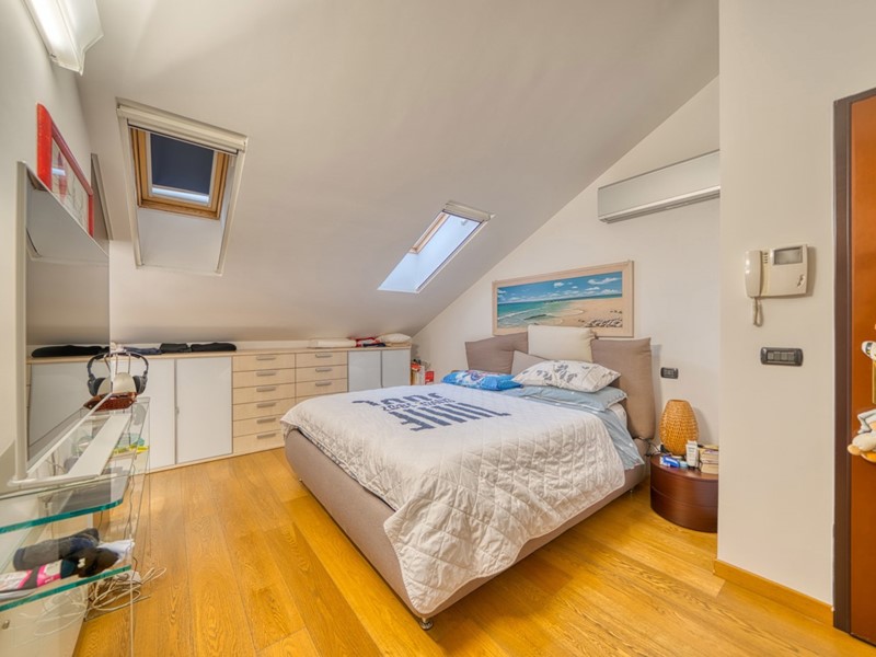 Al piano superiore, con regolare agibilità: una seconda camera da letto matrimoniale, dotata di cabina armadio e un secondo bagno finestrato. Completano la proprietà una cantina e un box auto pertinenziale al piano interrato acquistabile a parte a ? 30.000.