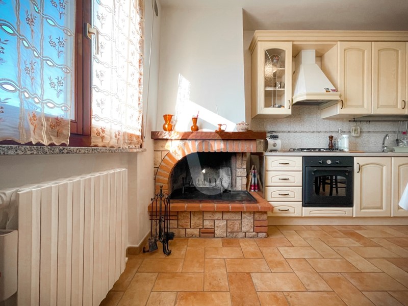 All’ingresso troviamo una zona giorno ben organizzata, composta da un’accogliente sala e da una spaziosa cucina abitabile, luminosa e dotata di camino, con accesso a un bel balcone.