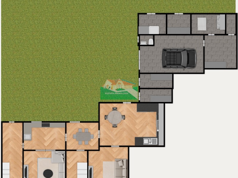 Possibilità di dividere l'abitazione in due unità abitative, esistenti già due ingressi separati. La prima unità abitativa è composta da ingresso con sala, cucina abitabile e un bagno al piano superiore un bagno finestrato una camera da letto e due camere. La seconda unità abitativa è composta da sala e cucina abitabile al piano superiore due camere da letto e un bagno finestrato.