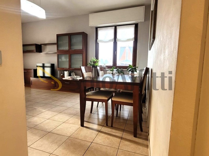 In zona residenziale a 600 mt dalla stazione, limitofe a oratorio asilo e scuole e a tutti i servizi del centro cittadino proponiamo in affitto arioso e anpio trilocale di circa 90 Mq. sito al primo piano di una signorile palazzina. L'alloggio recentemente ristrutturato presenta dettagli eleganti e spazi ben suddivisi. Ingresso su spazioso disimpegno con elegante abbassamento ad anticipare la spaziosa zona giorno con pavimentazione in ceramica, doppia esposizione e accesso al sfruttabile terrazzino dotato di tenda da sole; la cucina abitabile propone secondo balcone. La zona notte nettamente suddivisa si sbottona sul disimpegno arredado con armadiatura a muro doccia e vasca . Aria condizionata presente con triplo split. Moderne le rifiniture interne. Completano l'appartamento il garage singolo. Disponibile dal 15 gennaio 2026.