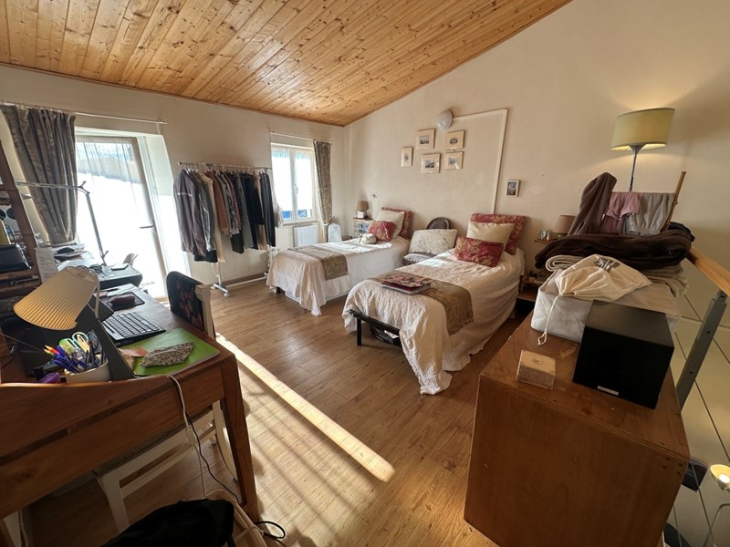 Una pratica scala conduce al piano superiore, dedicato alla zona notte, dove si trova una ampia suite matrimoniale con zona studio e accesso a una terrazzina panoramica, perfetta per godere della vista e della tranquillità circostante.