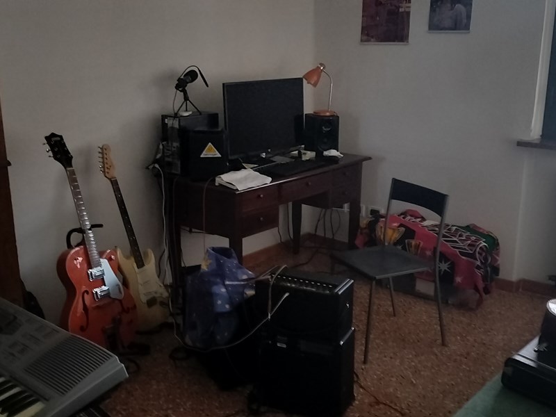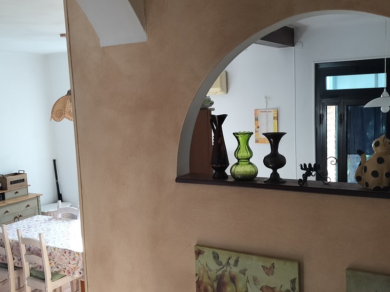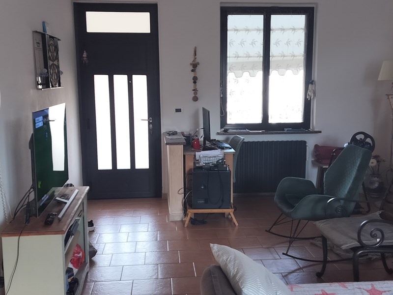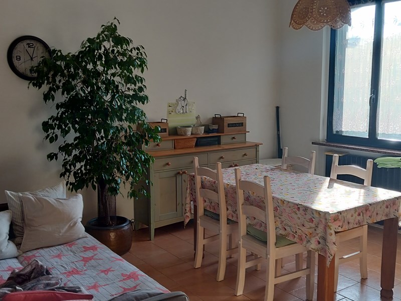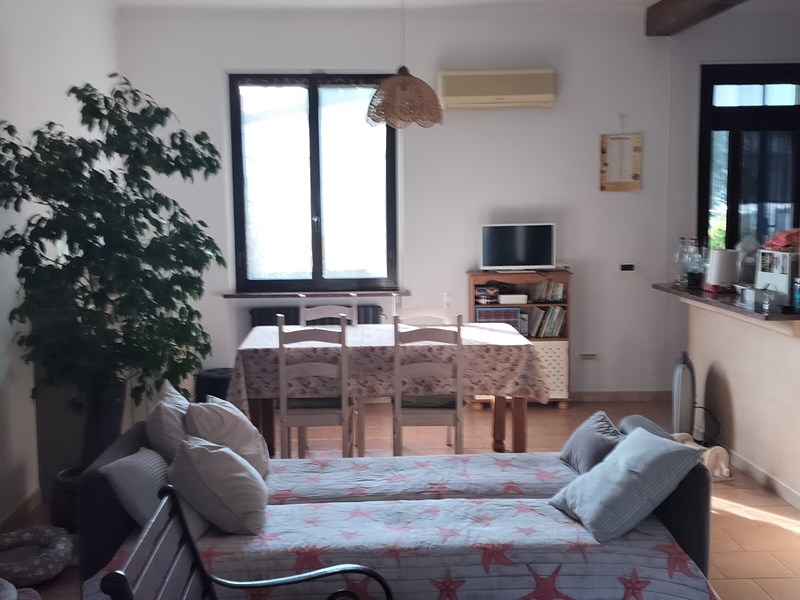 villa a schiera su 2 piani. A pian terreno ampio garage + cantina + bagno servizio; al 1° piano soggiorno e cucina open space, al 2° piano 2 camere da letto + 1 bagno.