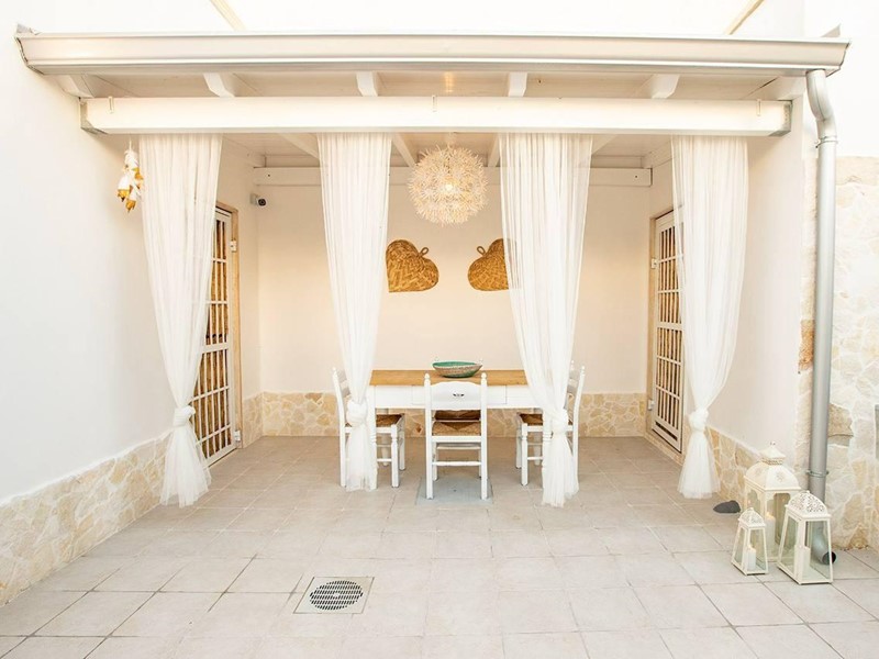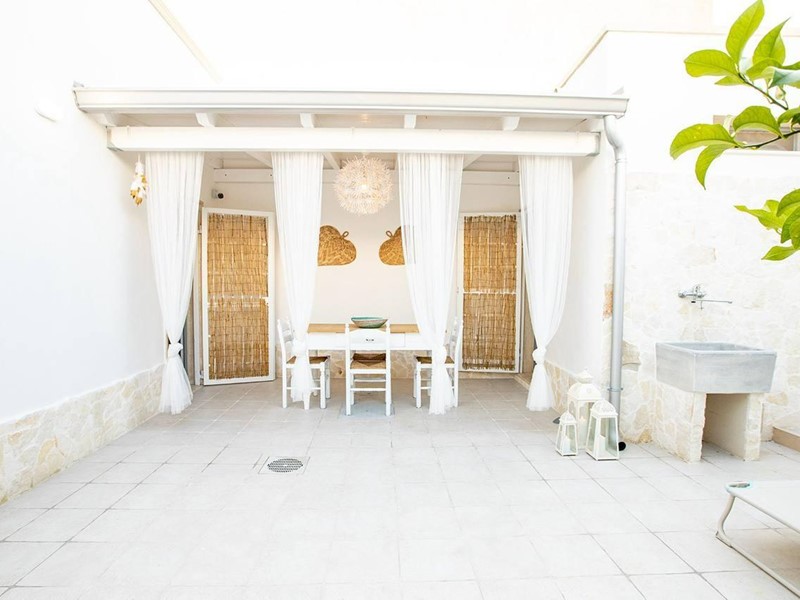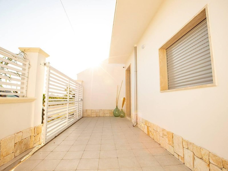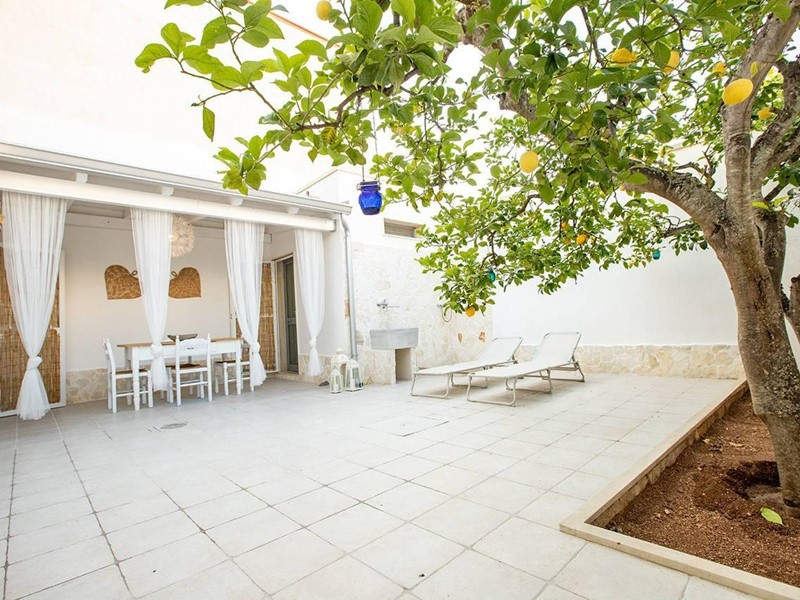 All'esterno, la villetta dispone di un giardino privato che diventa un vero prolungamento dell'abitazione. Uno spazio ideale per cene all'aperto, momenti di relax o per trascorrere le serate estive immersi nel clima mediterraneo. L'atmosfera è riservata e piacevolmente ventilata, perfetta per chi cerca tranquillità senza rinunciare alla vicinanza alla spiaggia.