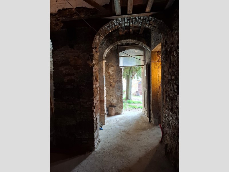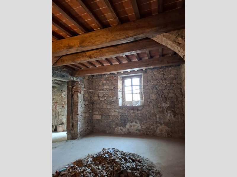 Sono già stati eseguiti importanti lavori strutturali: rifacimento dei solai, del vespaio e dei massetti, oltre al consolidamento delle fondamenta. Restano da completare le finiture: pavimenti, infissi, impianto idraulico ed elettrico.