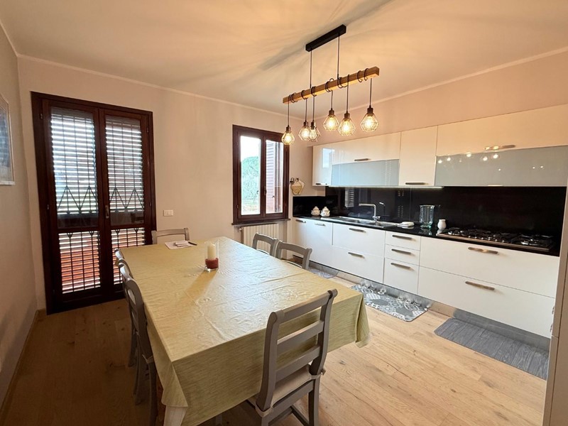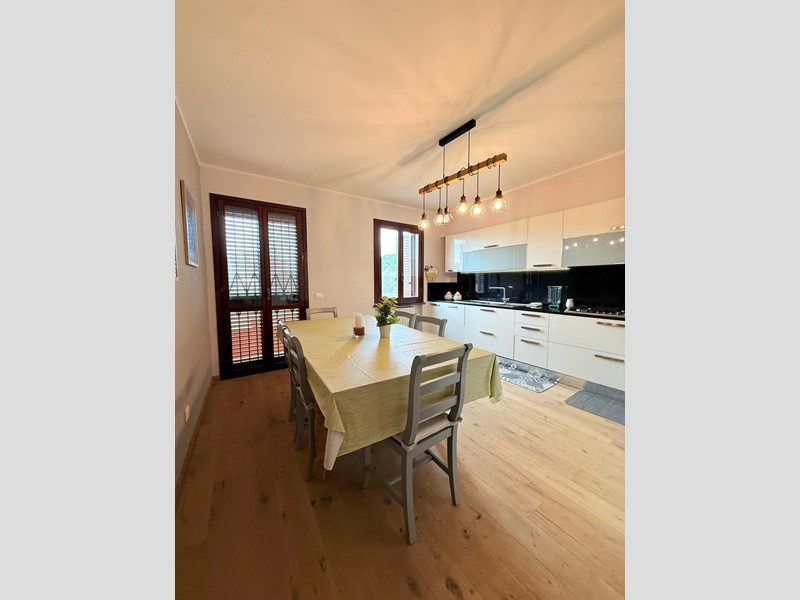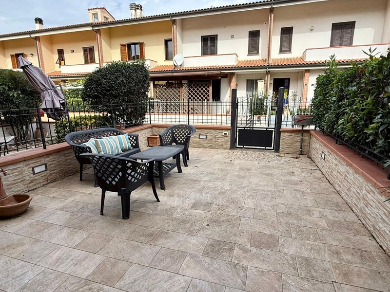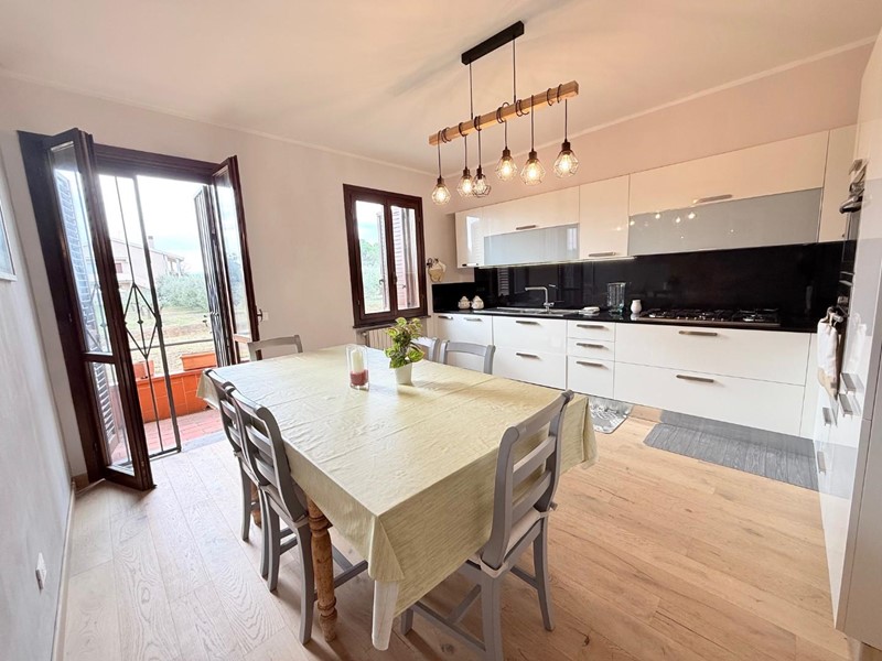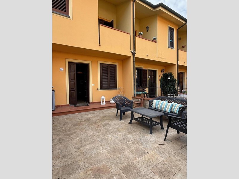 Bella villetta a schiera in vendita a La Rosa di Terricciola, ristrutturata nel 2023, la villetta si presenta in ottimo stato, pronta per accoglierti con tutto il comfort moderno., al piano terra giardino esclusivo recintato, salotto con caminetto, bagno di servizio, grande cucina abitabile con balcone. Al primo piano grande camera matrimonaile con balcone, cameretta con balcone coperto, grande bagno, al piano sottotetto grande locale pluriuso con finestre. La casa ha una bella zona seminterrata con taverna/cantina con accesso comodo da scala in muratura dalla zona giorno. Garage con altro bagno con doccia.