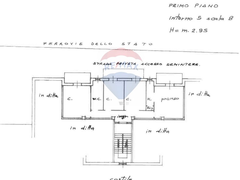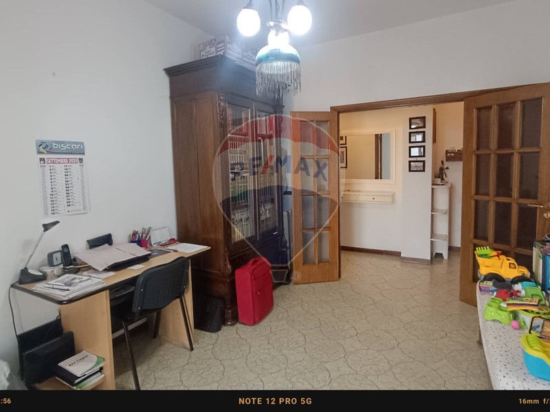 Gli spazi interni sono ben distribuiti si compone di tre camere ,attualmente due destinate a zona notte ed una a zona giorno (studio) ,i vani sono molto ampi, una cucina abitabile, un cucinino, due ripostigli;