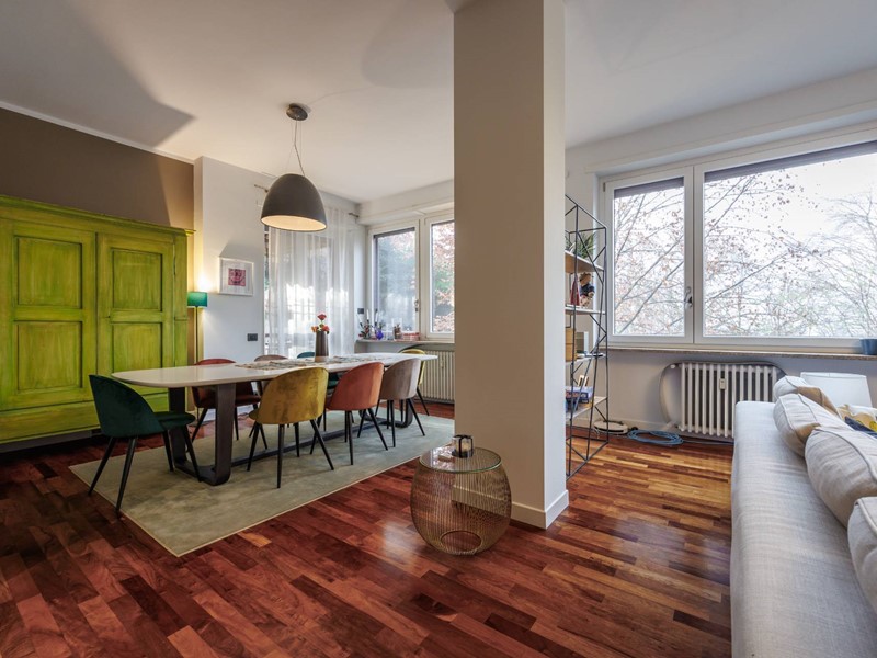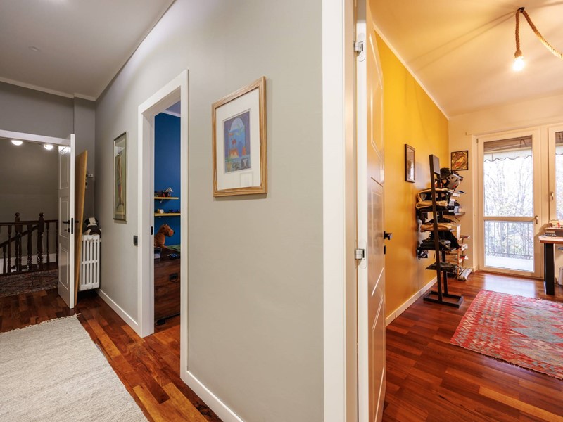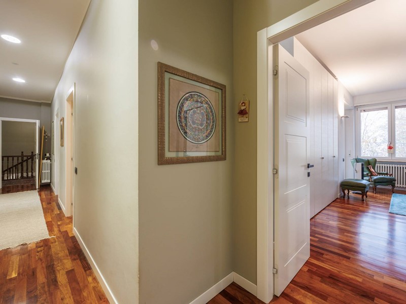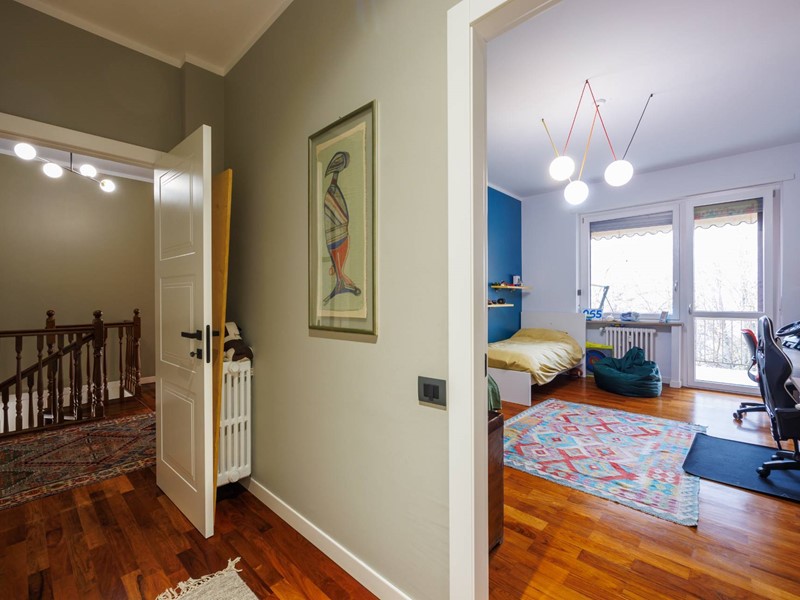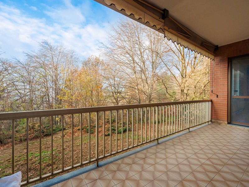 In tranquilla palazzina con poche unità abitative, nel verde delle colline di Moncalieri, vendesi ampio appartamento recentemente e finemente ristrutturato, al piano terra.
