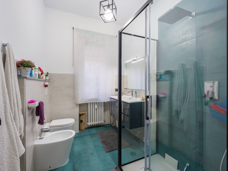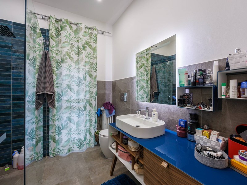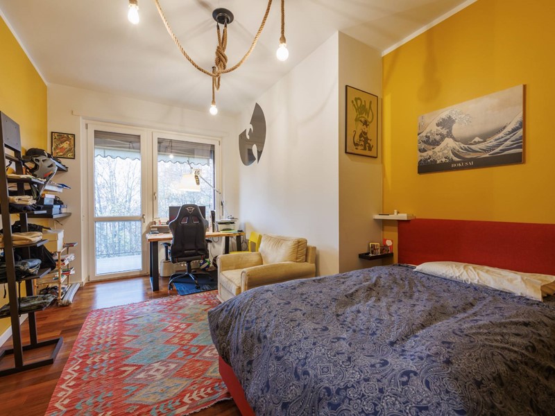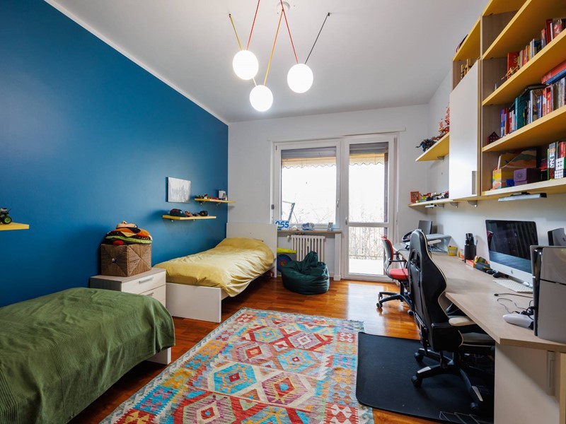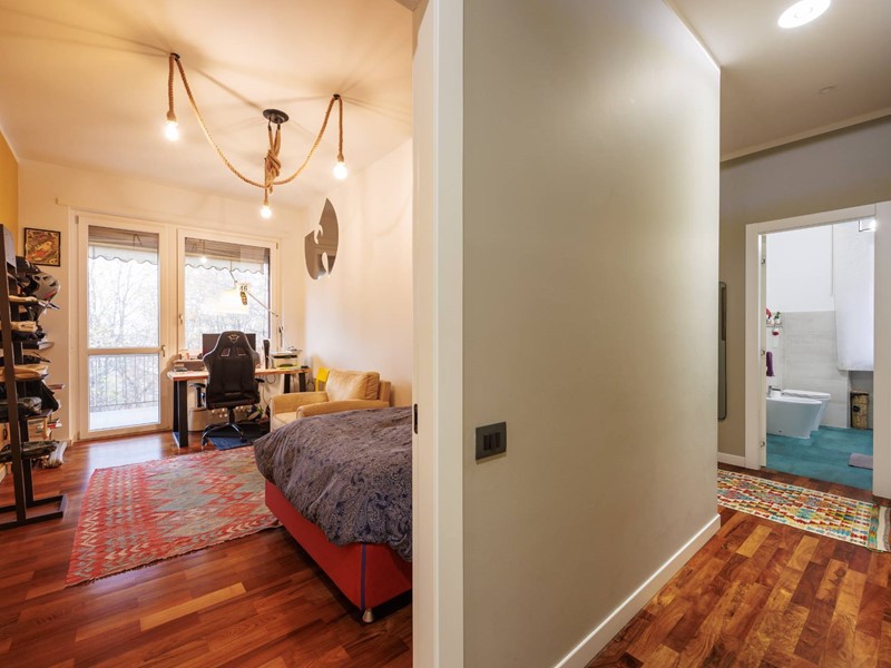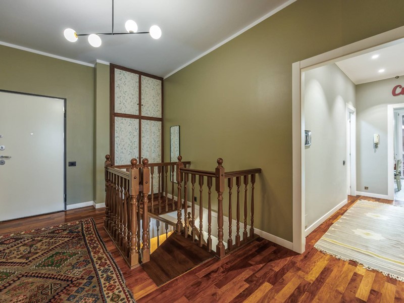 L'immobile è composto da ingresso su salone doppio con ampie vetrate, cucina abitabile con accesso al primo terrazzo, tre camere che condividono un altro grazioso terrazzo con affaccio sul verde, due bagni (entrambi finestrati), di cui uno "en suite" per la camera padronale, lavanderia e sgabuzzino.