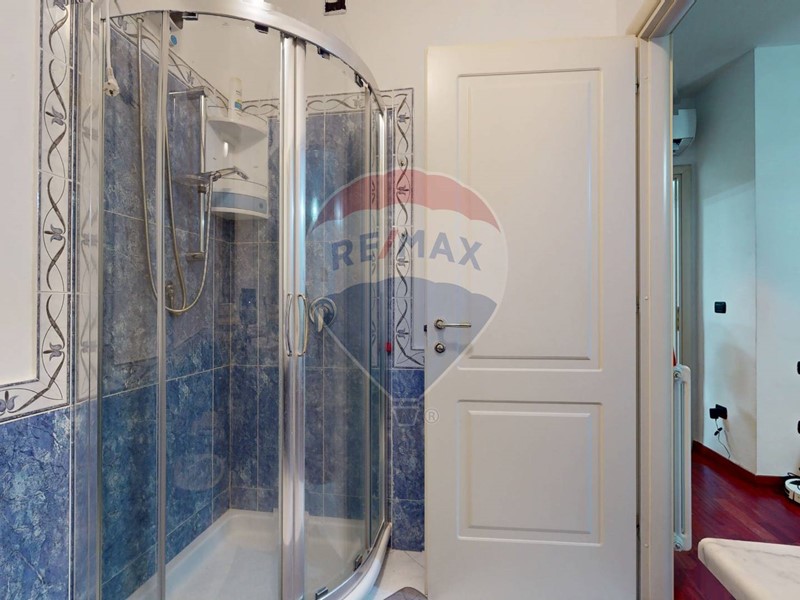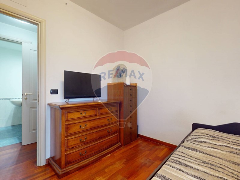 Situato al primo piano e fornito di ascensore, l'appartamento si apre su un ampio soggiorno, da cui si accede sia alla cucina abitabile che all'ampio terrazzo che segue su tutto un lato l'immobile. Un bel disimpegno divide la zona notte dotata di parquet, costituita da 2 camere da letto, di cui una matrimoniale con bagno en suite, una camera singola, ed un altro bagno. Oltre a porta blindata, zanzariere ed aria condizionata, l'appartamento è dotato di un posto auto scoperto e di una cantina, entrambe di proprietà.