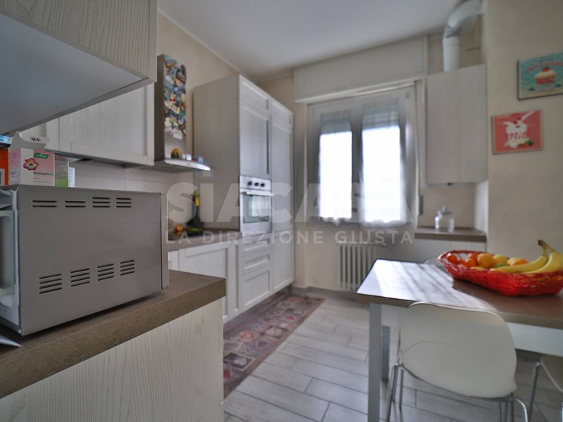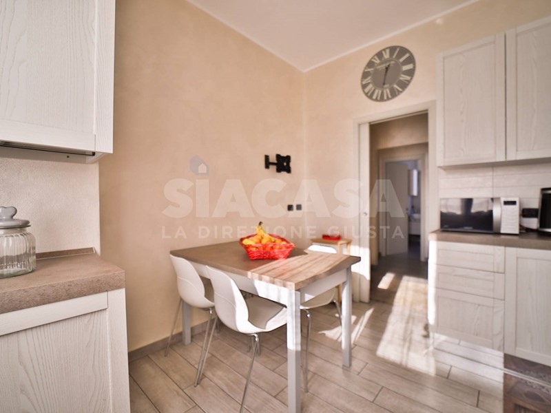 Situato al primo piano, lingresso introduce nel soggiorno con affaccio su un terrazzino coperto e poi troviamo la cucina abitabile.