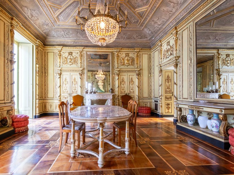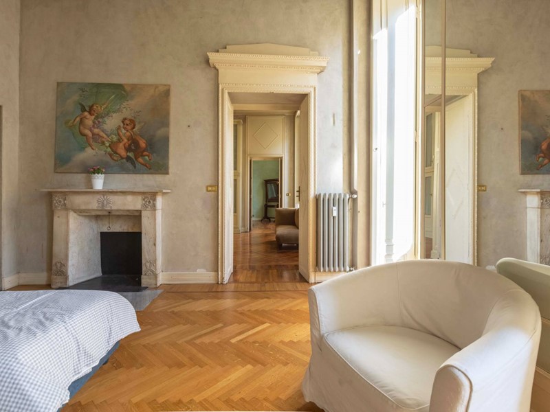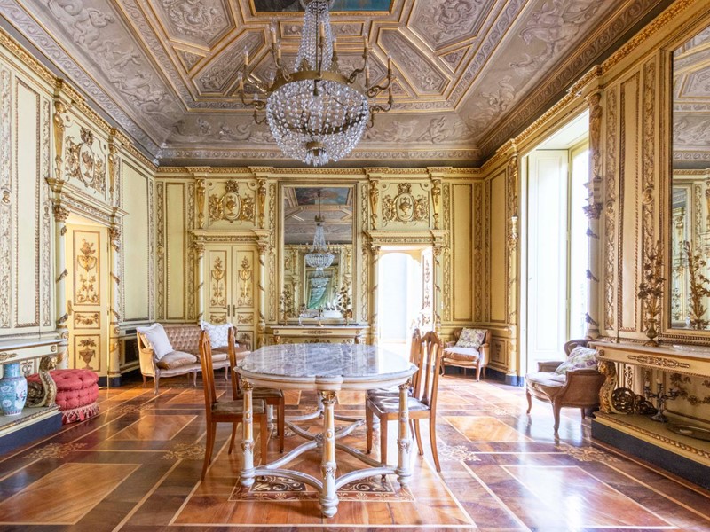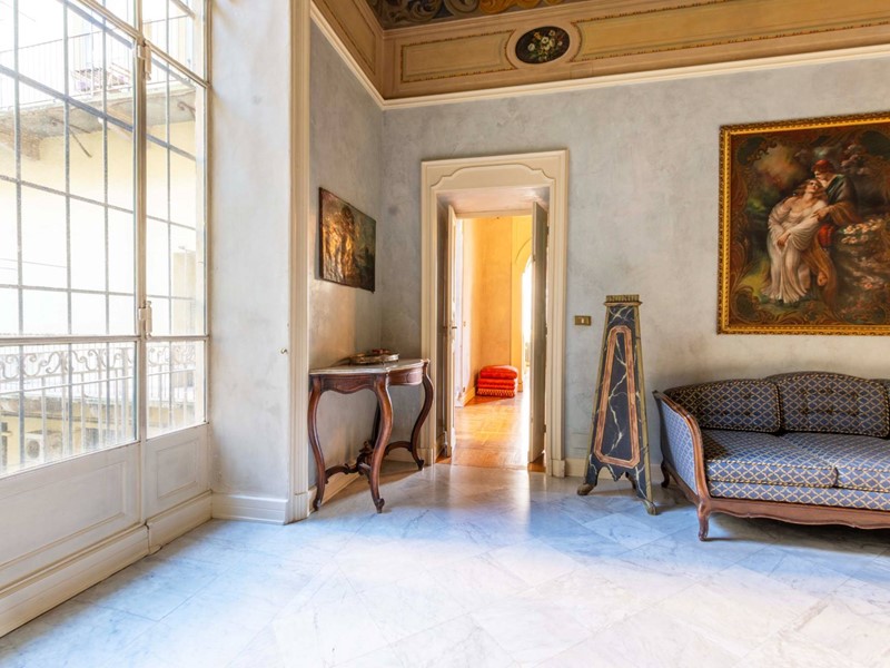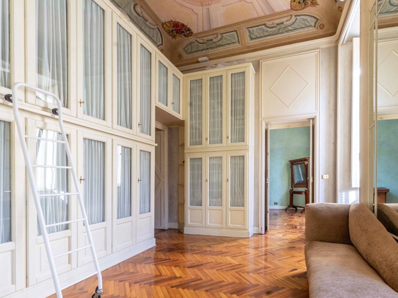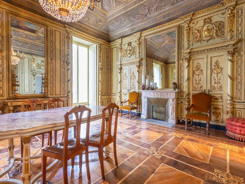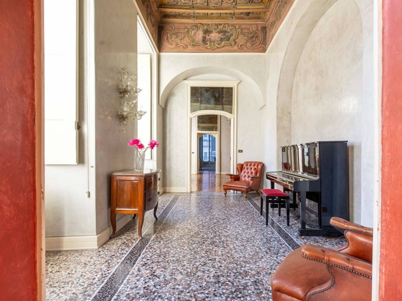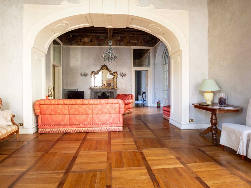 Lingresso introduce a un ampio soggiorno scenografico, perfetto per ricevere ospiti o vivere momenti conviviali in un contesto di grande charme. Si accede poi a tre saloni di rappresentanza, caratterizzati da soffitti affrescati a cassoni, ampie finestre ideali per eventi, ricevimenti o serate raffinate in unatmosfera elegante e senza tempo.