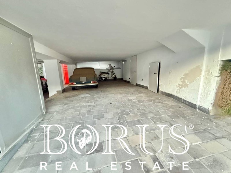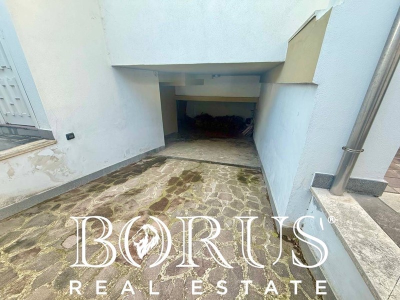 La soluzione è accessibile da due strade, presenta due portoni carrabili da 10 metri mq di lunghezza ciascuno ed insiste su un lotto di terreno di 900 mq. Il piano terra si presenta in parte verde ed in parte pavimentato con pregevole porfido caratterizzato da inserzioni di fossili. Su tale superficie insistono due piccoli ripostigli ed unarea porticata concepita per il parcheggio delle vetture.
