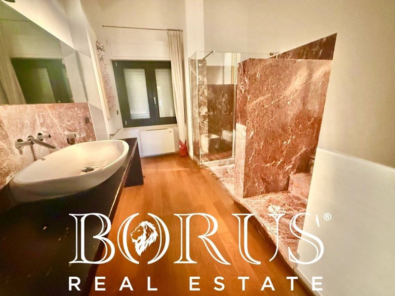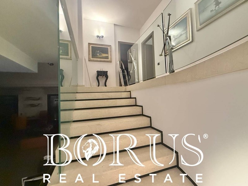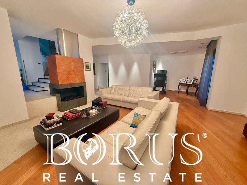 Il piano rialzato vanta tripla esposizione (in cucina, salone e terrazzo), raggiunge un metraggio di circa 200 mq ed è accessibile grazie ad una comoda scala esterna ed un portane blindato pivotante. Lampio ingresso divide il salone dalla cucina living. Questultima raggiunge un metraggio di circa 45 mq e si suddivide tra il comporto dedicato alla cucina (ottimizzabile con un piano allamericana) e dallarea Tv; lapertura laterale alla cucina ci permette di apprezzare una spettacolare terrazza di circa 40 mq ideale per godersi lestate. Comodo il ripostiglio che si collega a tale ambiente. Il salone di 40 mq presenta un bellissimo parquet Berg. Completano il livello uno studio ed un accessorio. La bellissima scala in marmo travertino con appoggio in vetro posta frontalmente allingresso ci conduce al piano primo di 200 mq. Larioso disimpegno ci porta alla camera da letto matrimoniale, la quale presenta antibagno e bagno con quadratura di 50 mq, alle due camerette, ad un piccolo vano uso studio ed ai due accessori (di cui uno con lavanderia e laltro con vasca idromassaggio). Le camere da letto sono servite da balconate terrazzate. Il sottotetto, con tripla esposizione, presenta altezza superiore ai 2,20 m e presenta un ampio salone, uno studio, una camera da letto, un ripostiglio ed un accessorio. Il piano seminterrato dispone di accesso indipendente e si compone di ampio vano centrale con angolo cucina, un accessorio ed una piccola cantina per la conservazione dei vini. APE = B. Richiesta di euro 1.000.000,00.