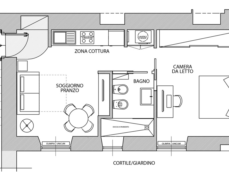L'immobile si compone di un accogliente soggiorno con zona pranzo e cucina a vista, una spaziosa camera da letto, un servizio con finestra e un comodo ripostiglio ad uso lavanderia.