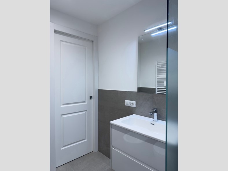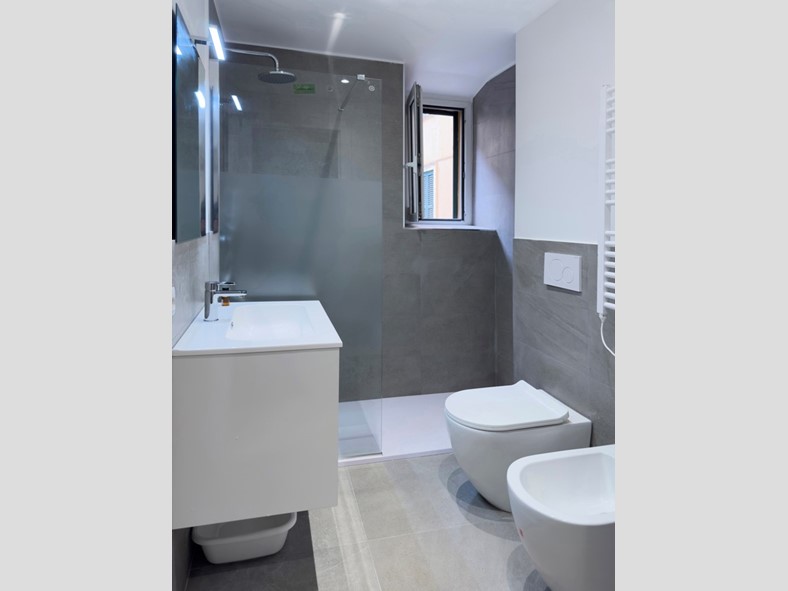 L'appartamento è stato completamente ristrutturato con l'utilizzo di pregevoli finiture. La pavimentazione è interamente realizzata in parquet mentre nel servizio, dotato di comodo box doccia, si è scelto l'utilizzo di un rivestimento in gres. L'impianto autonomo di riscaldamento e condizionamento d'aria con fan coil Olimpia Unicum, concorre al comfort dell'immobile e, al contempo, al contenimento dei consumi energetici anche grazie agli infissi di ultima generazione dotati di doppi vetri. Per garantirne la sicurezza, l'immobile è inoltre dotato di portoncino blindato.