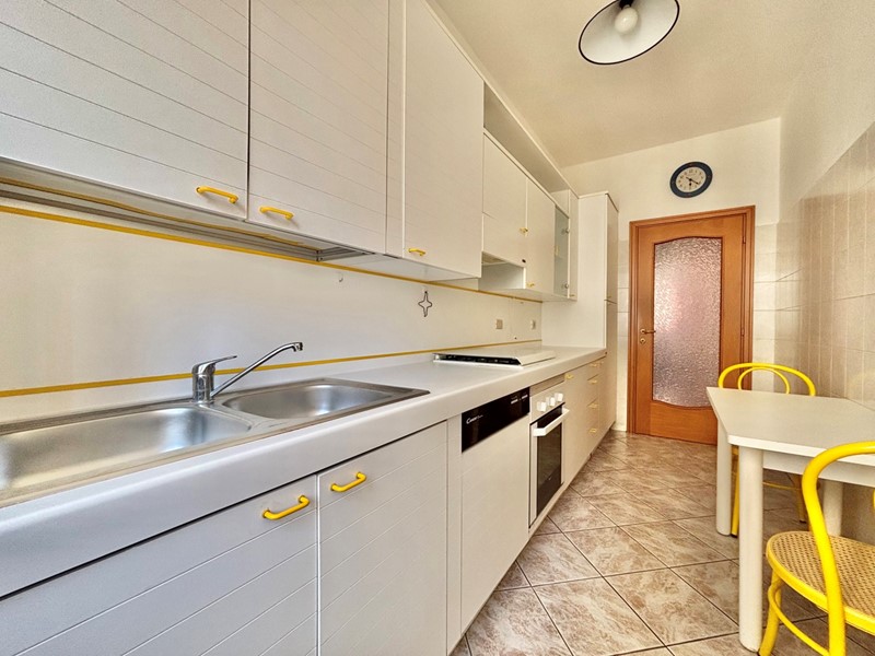 L'appartamento si apre su un ingresso che conduce a un soggiorno ben illuminato, creando un'atmosfera calda e accogliente. La cucina semi-abitabile è completamente attrezzata di tutti gli elettrodomestici, inclusa una comoda lavastoviglie, offrendo funzionalità all'ambiente.