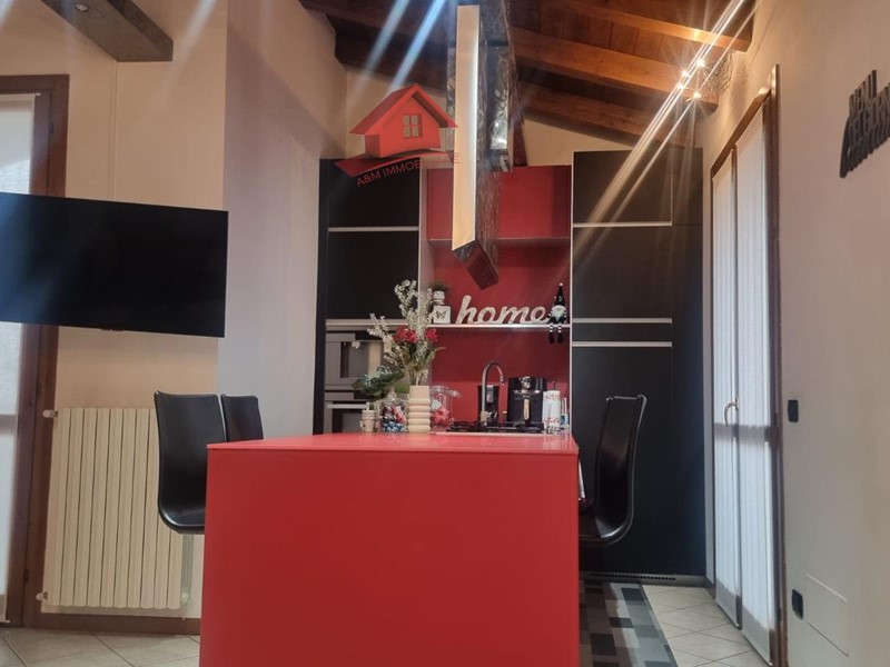 A&M IMMOBILIARE SRL, propone in VENDITA a ROMANO DI LOMBARDIA, splendido bilocale mansardato con travi a vista con box.