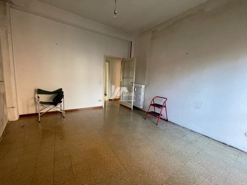 L’appartamento è composto da soggiorno con balcone, cucina separata, disimpegno, due camere matrimoniali (una con balcone) e bagno finestrato con doccia, ristrutturato negli anni ’90. L’immobile si presenta in condizioni prevalentemente originali.