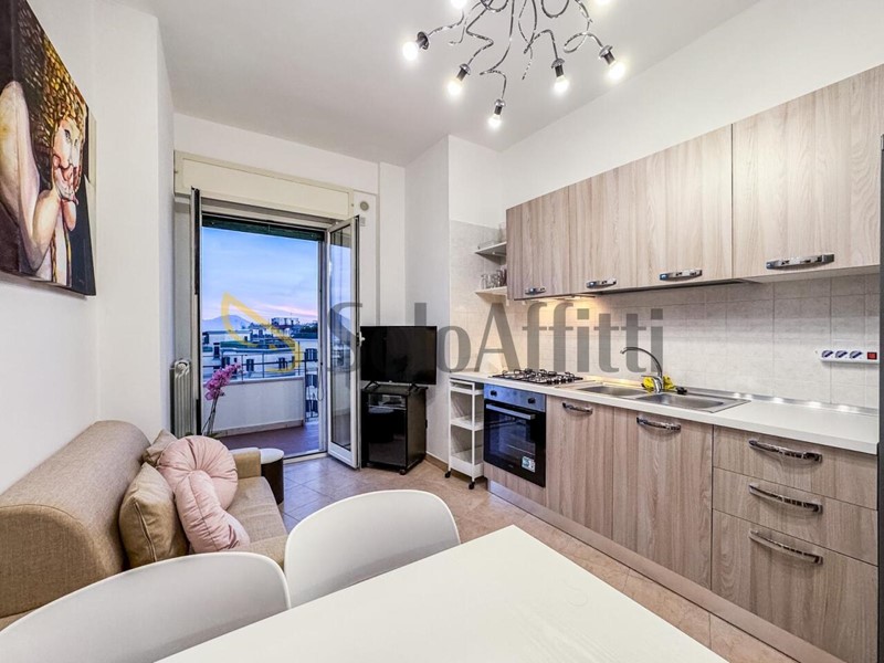 Nelle imm. ad. Piazza Muzii, l'agenzia “Solo Affitti Napoli 1” propone in locazione moderno bilocale arredato con balconata panoramica.