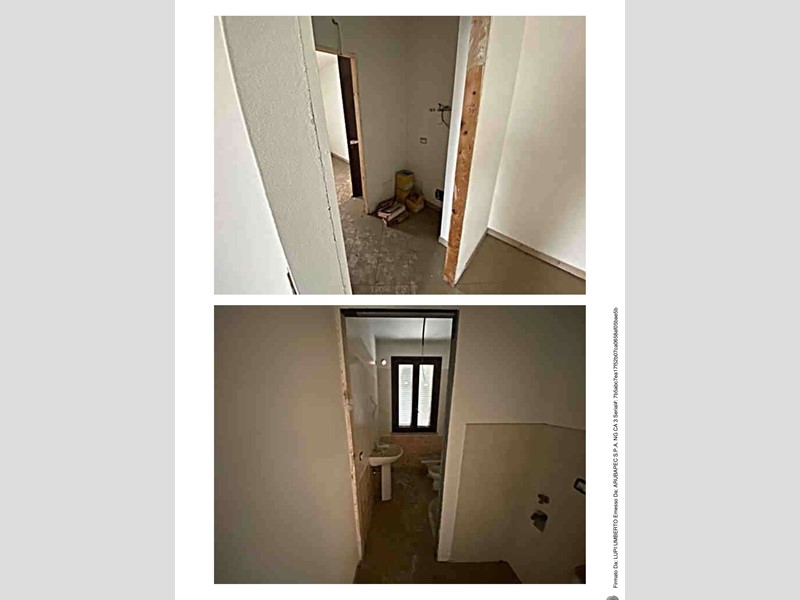 Appartamento per civile abitazione ubicato al piano primo, lato nord-ovest di un più ampio fabbricato comprendente complessivamente otto unità abitative e sei posti auto coperti, a sua volta ricompreso in un maggior lotto di complessivi due edifici. L'abitazione in oggetto con accesso dalla strada pubblica tramite passaggio su resede e vano scala entrambi a comune è composto da soggiorno-pranzo con angolo cottura, disimpegno, camera e bagno con antibagno.