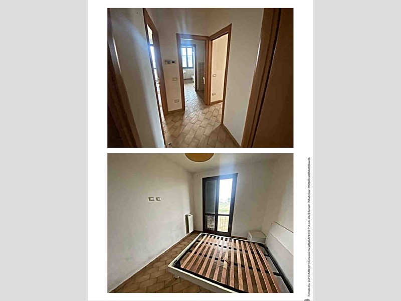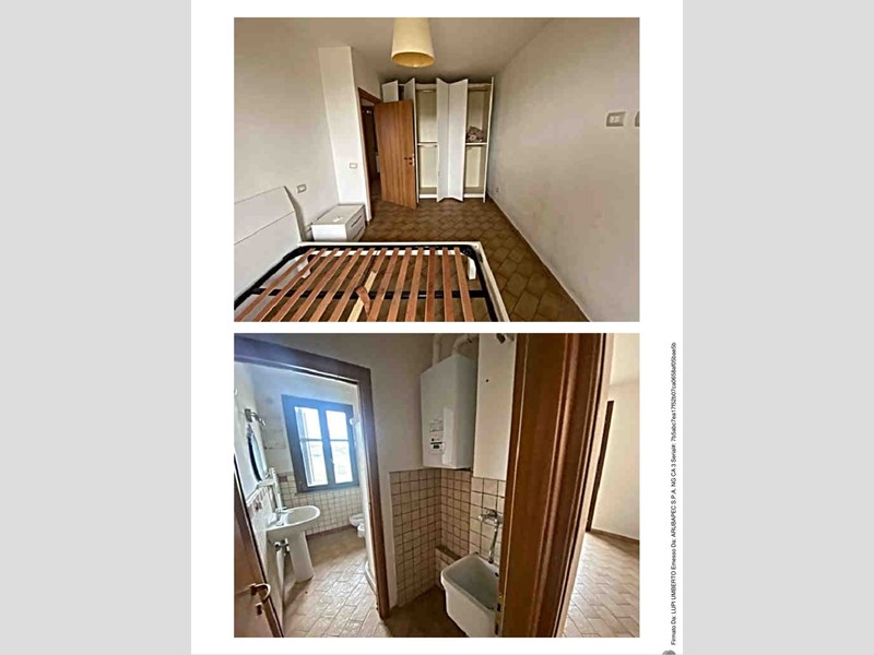 Appartamento per civile abitazione ubicato al piano primo, lato sud-est di un più ampio fabbricato comprendente complessivamente otto unità abitative e sei posti auto coperti, a sua volta ricompreso in un maggior lotto di complessivi due edifici. L'abitazione in oggetto con accesso dalla strada pubblica tramite passaggio su resede e vano scala entrambi a comune è composto da soggiorno-pranzo con angolo cottura, disimpegno, camera, bagno con antibagno e ripostiglio.