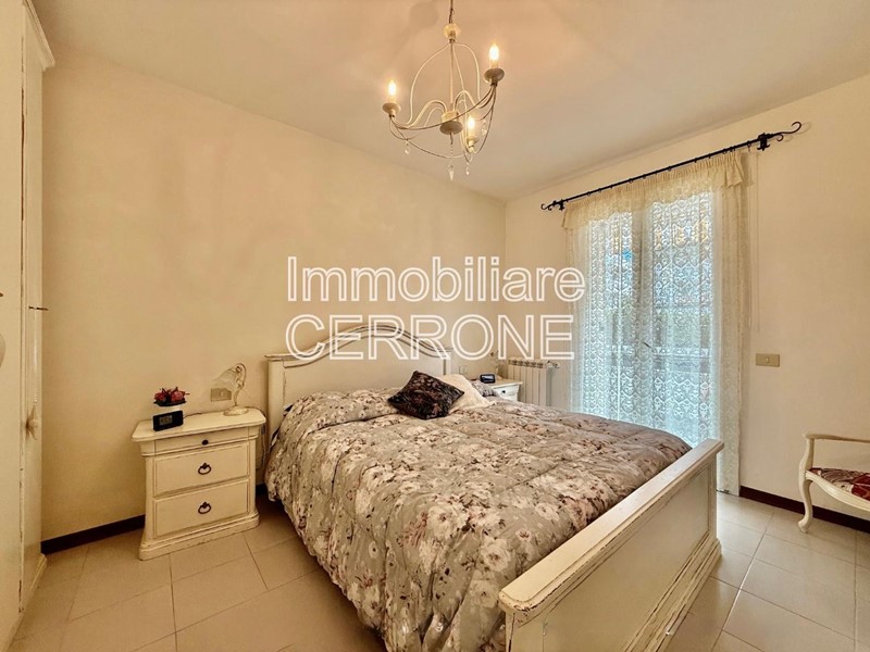La zona notte comprende 2 camere matrimoniali, una delle quali dotata di affaccio su un secondo terrazzo anch’esso dotato di tenda solare, oltre ad un disimpegno e ad un bagno finestrato con box doccia.
