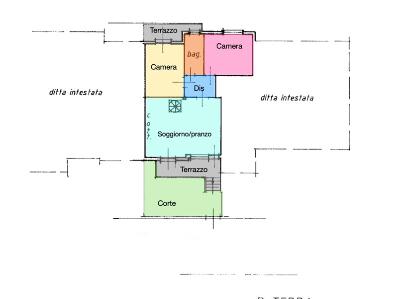 A rendere l’immobile davvero completo è la presenza di un’ampia CORTE esterna pavimentata di circa 30 mq., uno spazio privato perfetto per vivere l’esterno in ogni stagione, e di un comodo GARAGE di 34 mq., posto al piano seminterrato, accessibile sia dall’esterno che direttamente dall’interno dell’appartamento tramite scala a chiocciola situata nel soggiorno.