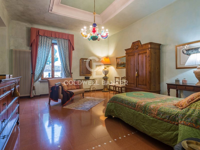 Proseguendo, lattenzione viene catturata dalla sontuosa camera matrimoniale padronale, impreziosita da soffitti prominenti e da lavorazioni storiche. Le note del tempo narrano persino che in questo ambiente abbia soggiornato Napoleone Bonaparte, conferendo alla stanza un fascino unico e una storia di grande rilievo. La vista sul centro storico della Regina dellAdriatico ne esalta ulteriormente latmosfera poetica.