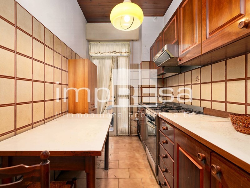 La cucina di 8mq è separata e abitabile e permette uno sfogo esterno su un terrazzino di 3mq.