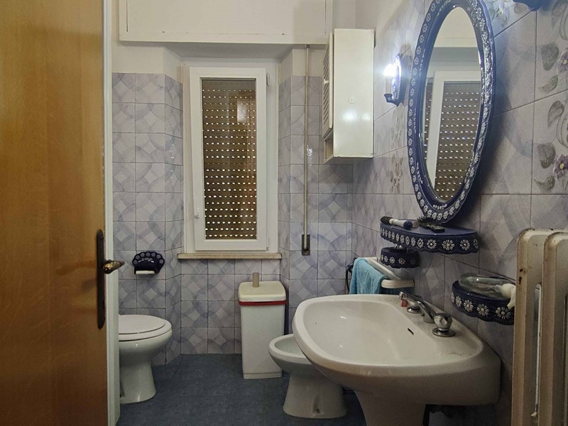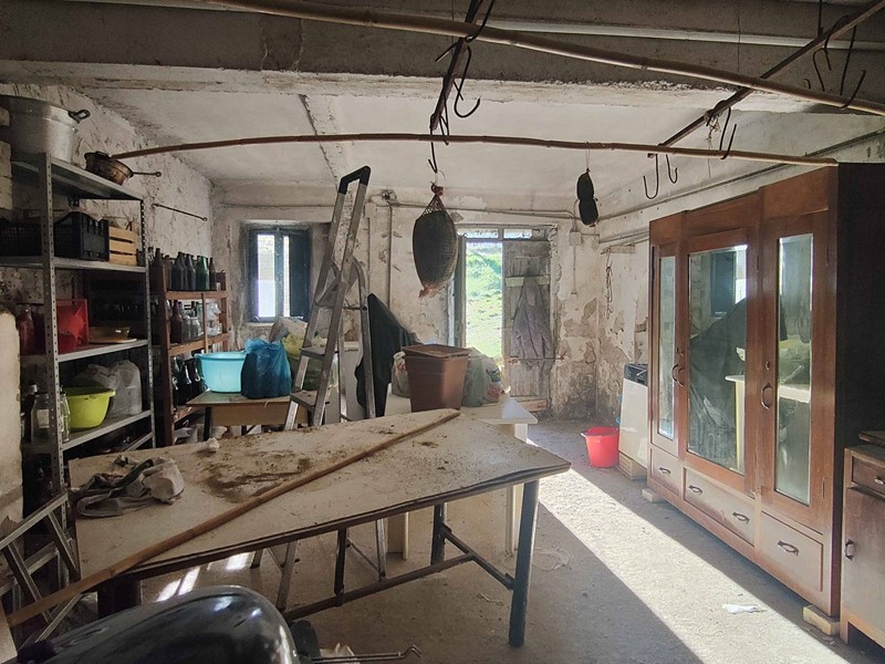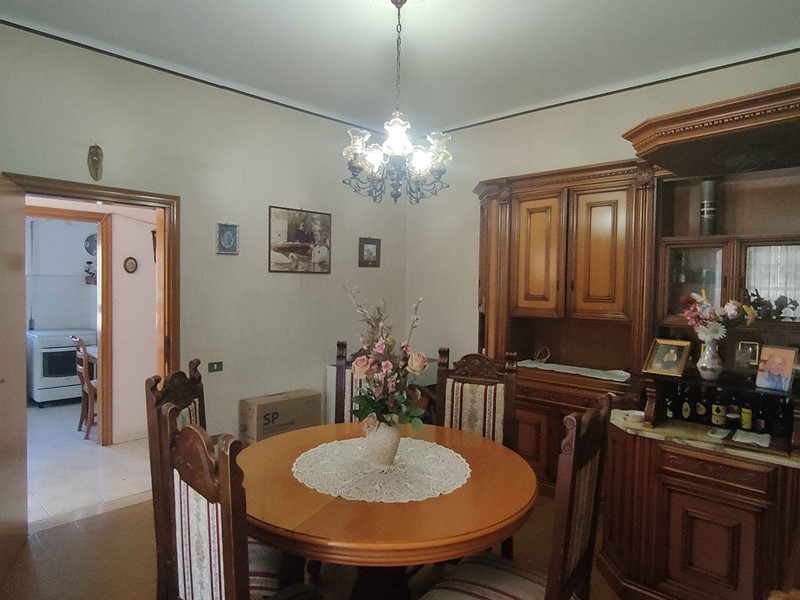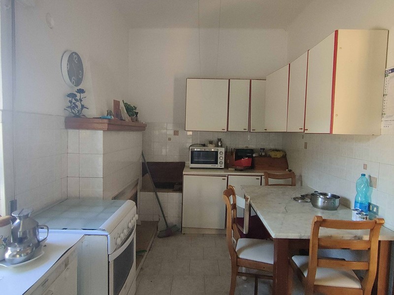 - piano primo, con accesso dal piano strada, completo di ingresso su disimpegno, cucina abitabile con camino, sala, tre camere da letto (una matrimoniale, una doppia e una singola), ed un bagno completo di doccia e finestra.