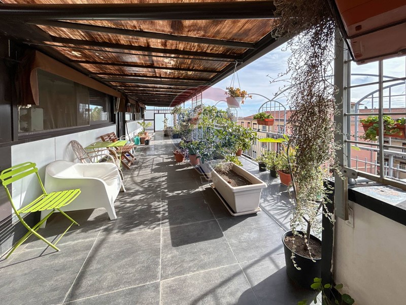 RE/MAX City Home propone in vendita attico di 2,5 vani con terrazza panoramica di 210 mq e vista mare/Etna, situato in via Vincenzo Bellini, nel pieno centro di SantAgata Li Battiati. Limmobile si trova al terzo piano di una palazzina signorile di quattro piani, con sole cinque unità abitative, in un contesto riservato ed esclusivo a pochi passi da scuole, supermercati e servizi di prima necessità.