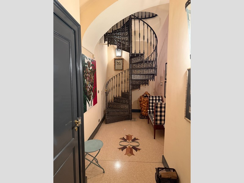 Limmobile dispone di ingresso privato dalla corte interna, che conduce a un ampio disimpegno impreziosito da ascensore privato e da una suggestiva scala in ghisa originale, elementi distintivi che conferiscono unicità alla proprietà.