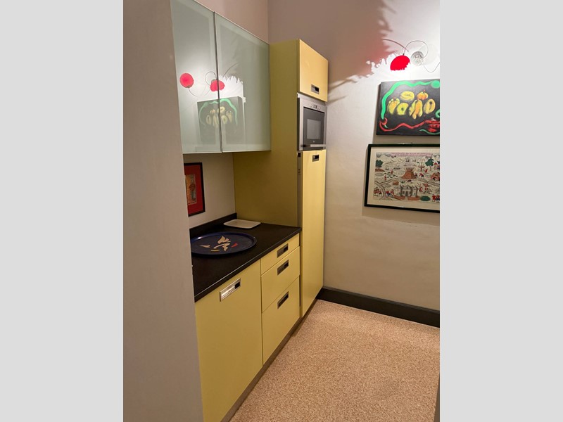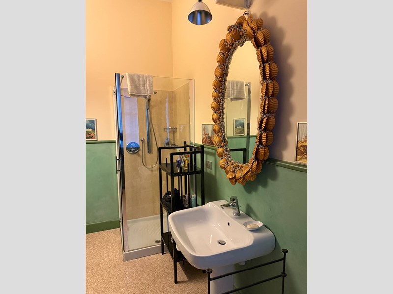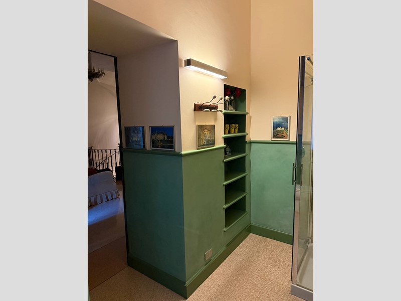 Al primo piano si sviluppa la zona abitativa, composta da una camera con accesso diretto al bagno e da un cucinino completamente arredato e attrezzato. Completa la proprietà unampia sala con soffitti a volte, perfettamente restaurata e ideale come living di rappresentanza.