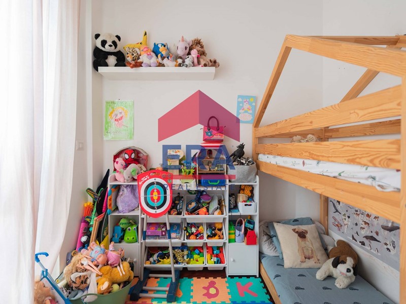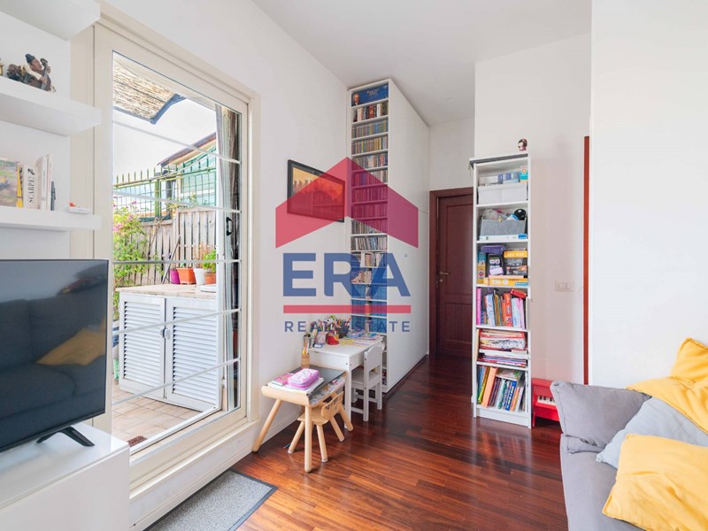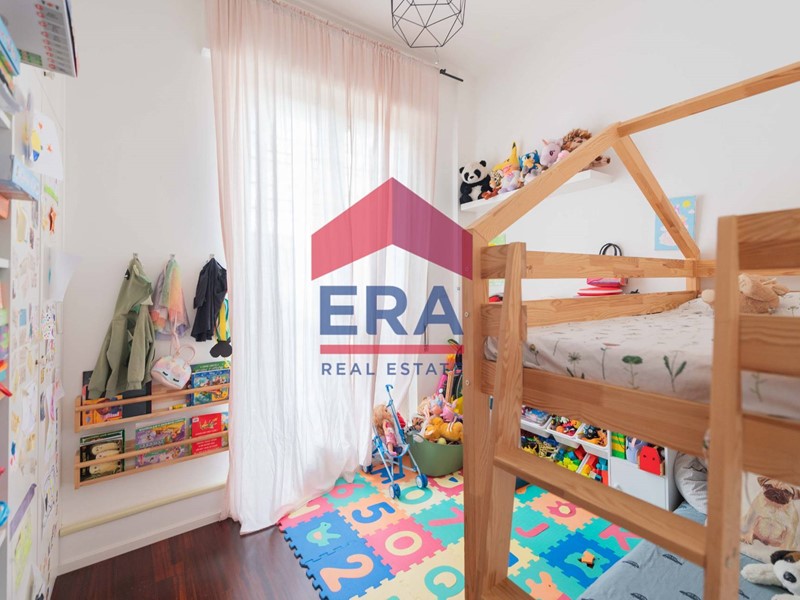 Lappartamento si apre su un luminoso soggiorno con doppia esposizione con cucina a vista. La zona notte è composta da una camera matrimoniale con bagno "en suite" con vasca, una cameretta con accesso diretto al balcone e un secondo bagno con doccia.
