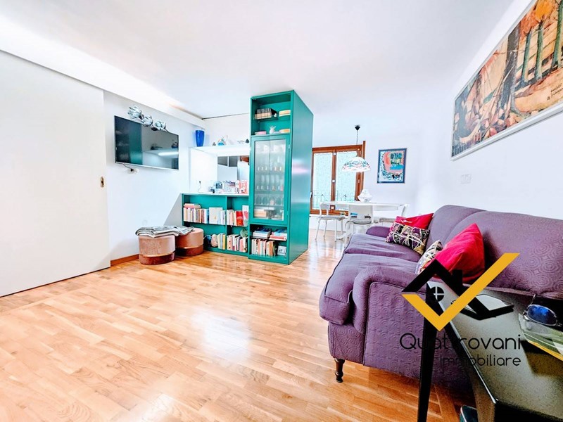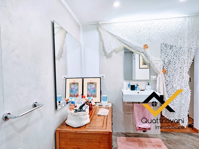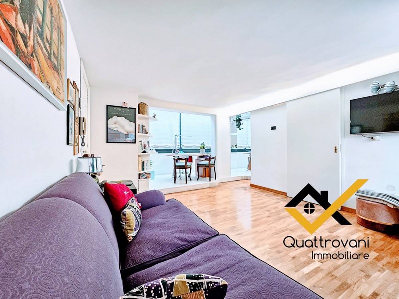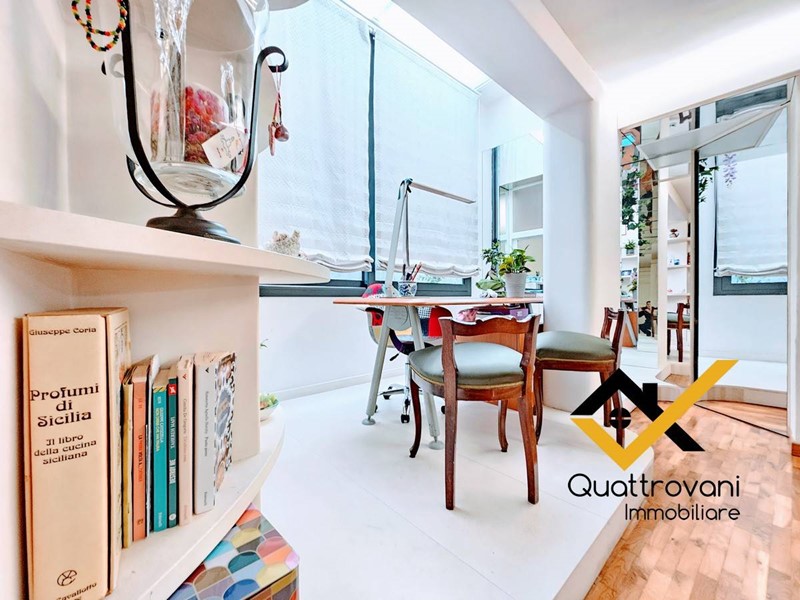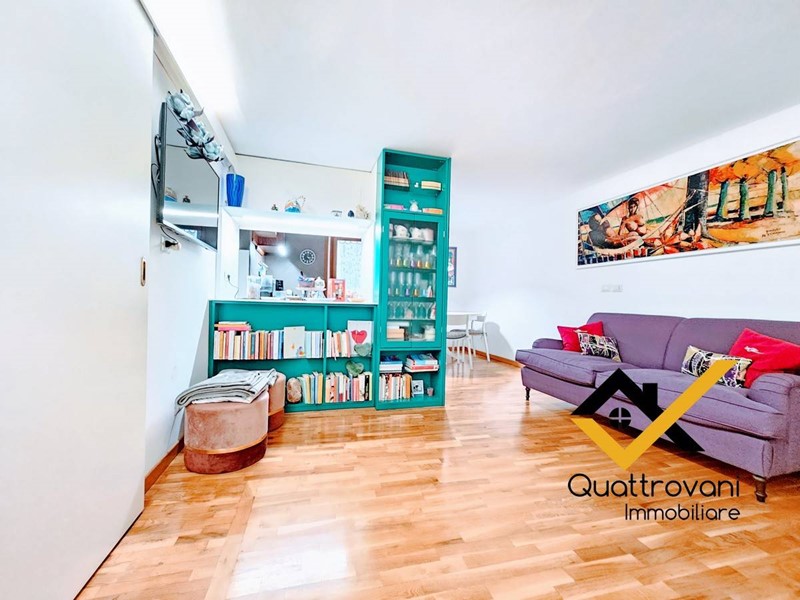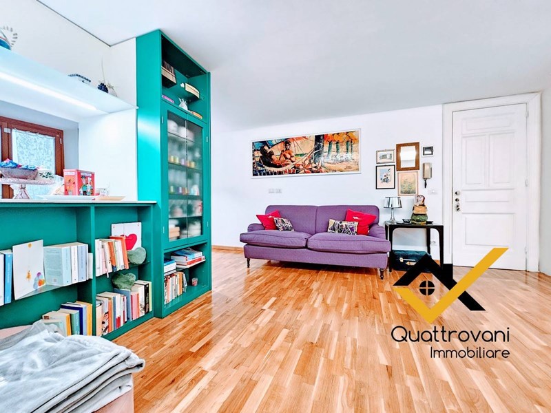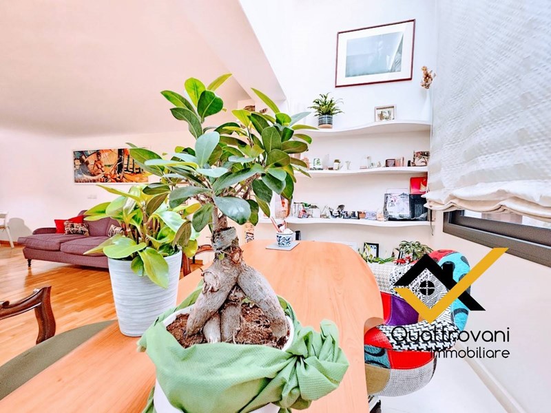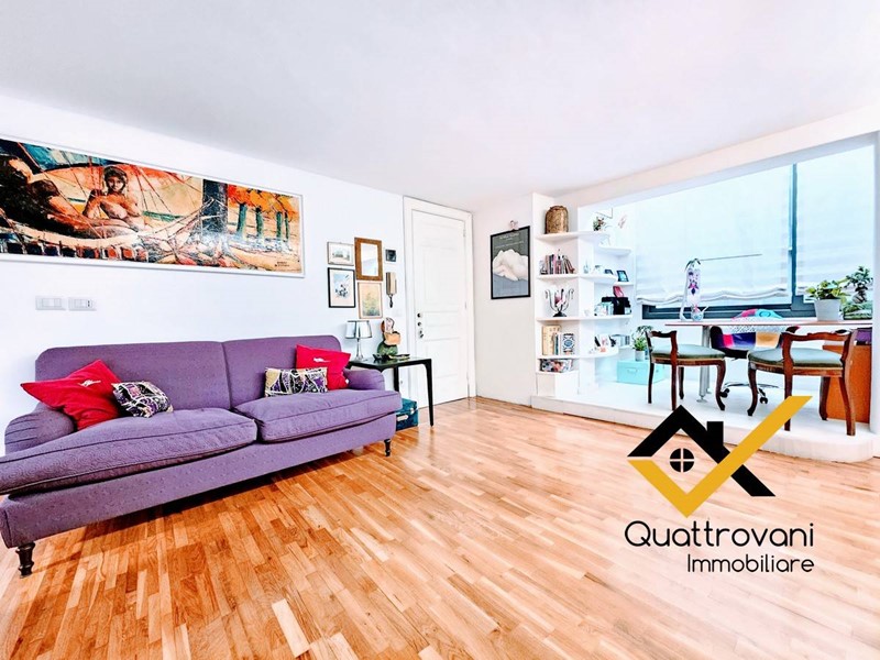 ingresso su open-space di 30 Mq circa, cucina a Vista, esclusivo angolo studio con libreria, camera da letto arricchita da piccola cabina armadio, bagno comodo con vasca, angolo lavanderia con 2° servizio.