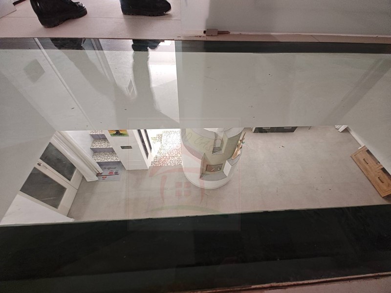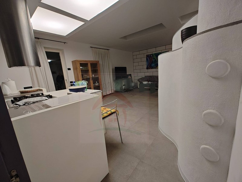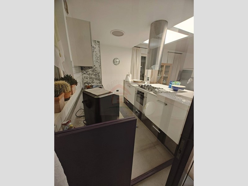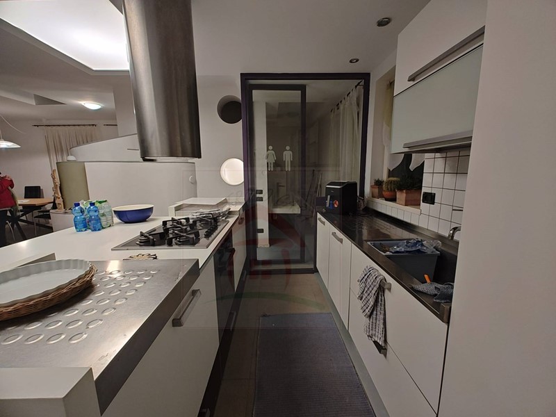primo piano: ampia zona giorno con moderna cucina a isola, bagno di servizio, tre balconi