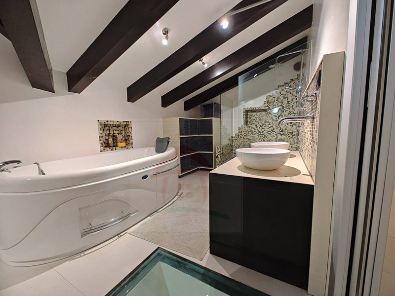 secondo piano sottotetto: due stanze, bagno con vasca idromassaggio e angolo doccia, locale tecnico