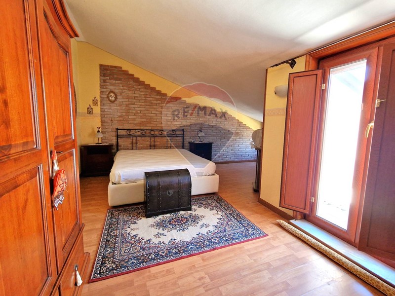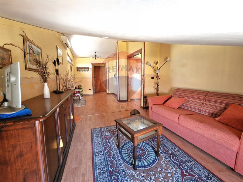 L'appartamento è caratterizzato da un suggestivo soffitto mansardato con travi a vista (altezza minima 1,25 m, massima 2,91 m, media 2,15 m), che lo rende unico e sfruttabile.