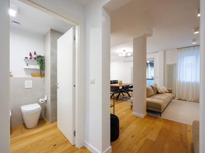 Le caratteristiche principali interne sono: il parquet di rovere in tutti gli ambienti interni della casa, gli infissi doppi in legno a taglio termico e antisfondamento, tapparelle motorizzate, zanzariere e aria condizionata con split a inverter.