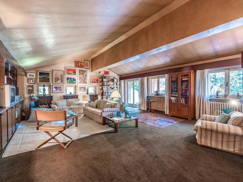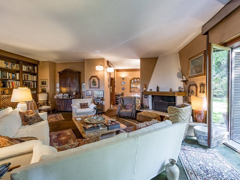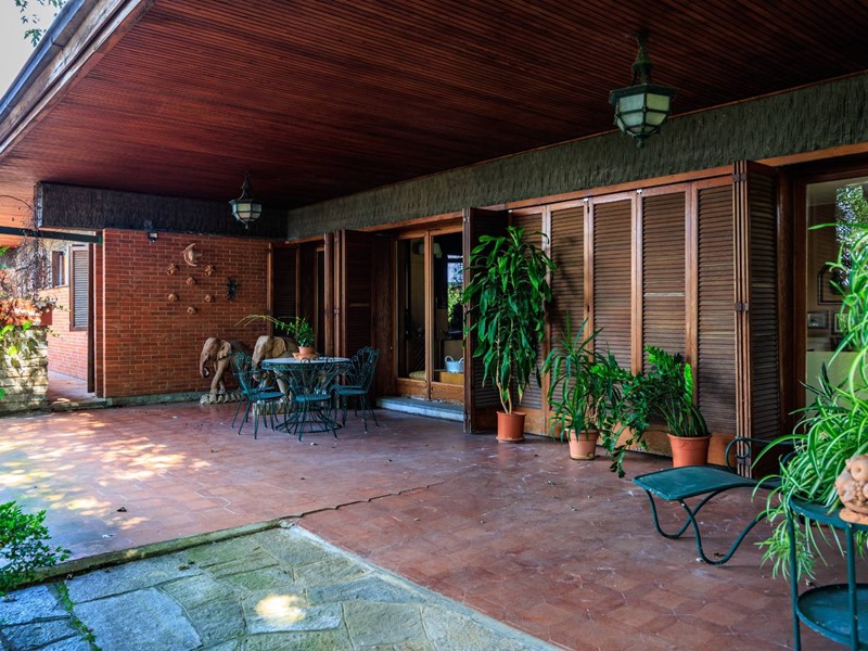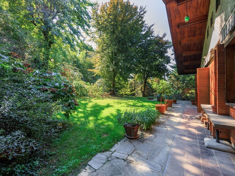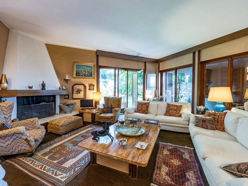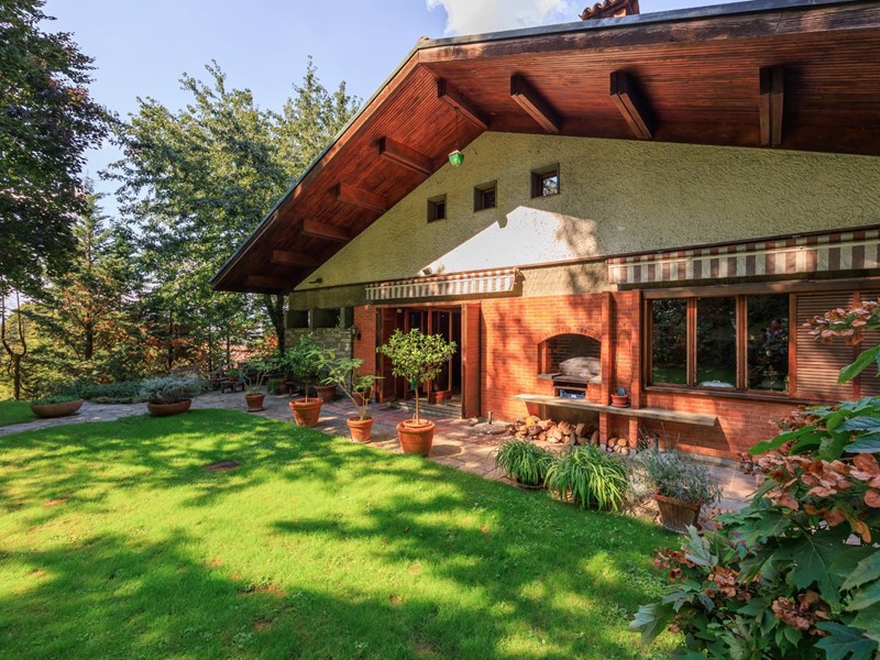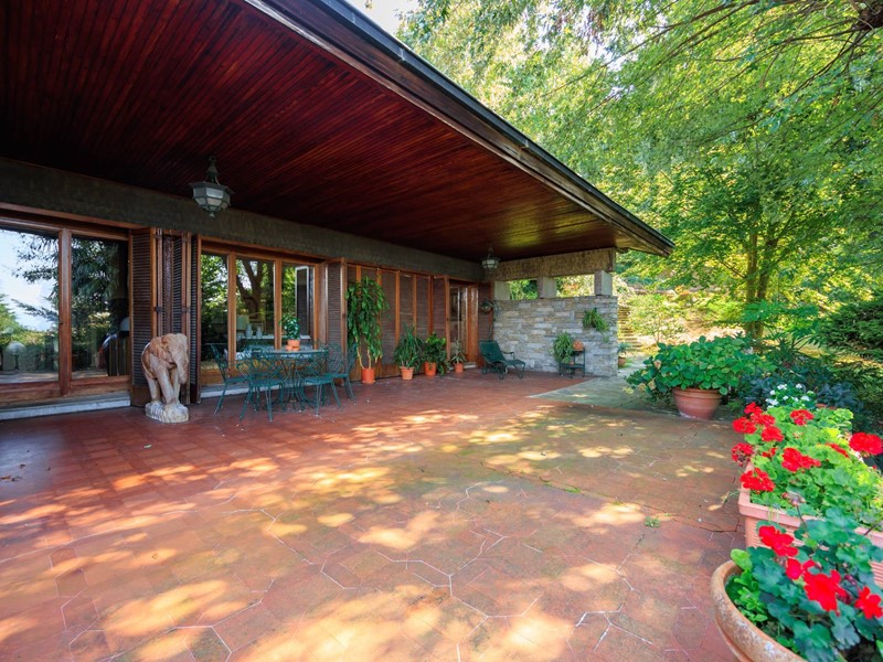 La villa è circondata da un giardino piantumato e curato, Il grande portico coperto e la terrazza panoramica creano un naturale prolungamento della zona giorno verso lesterno.