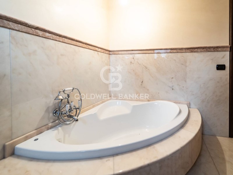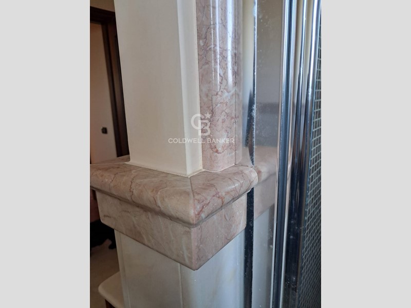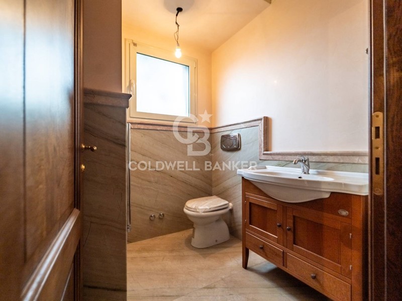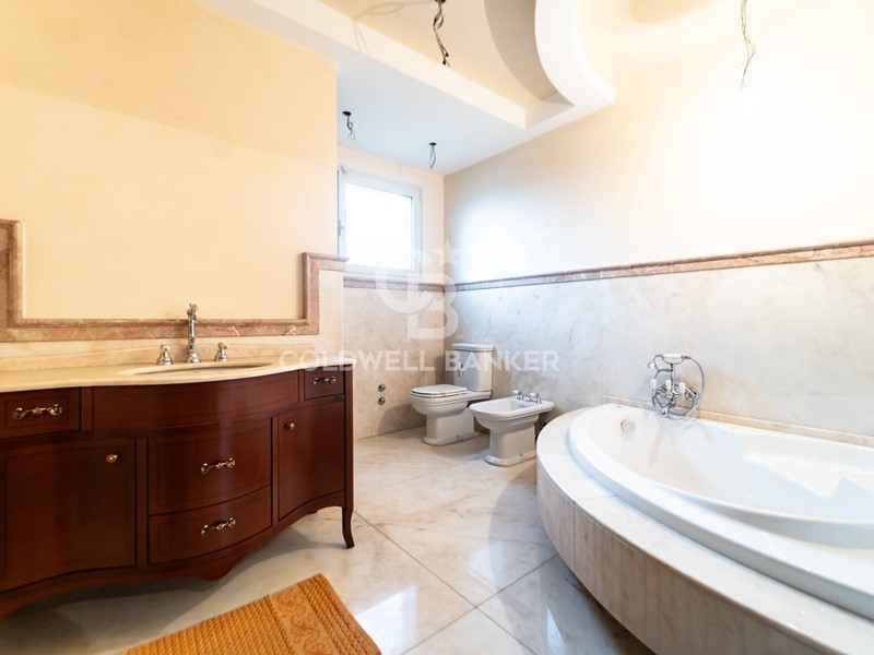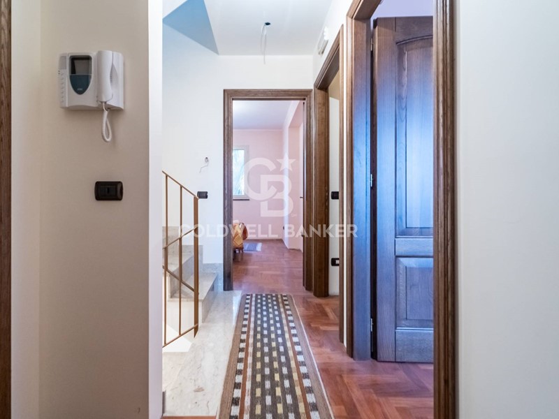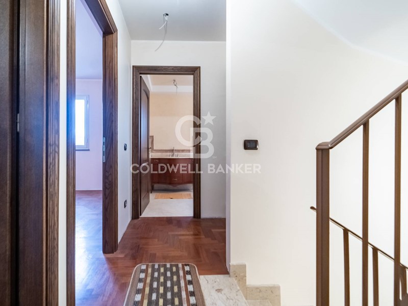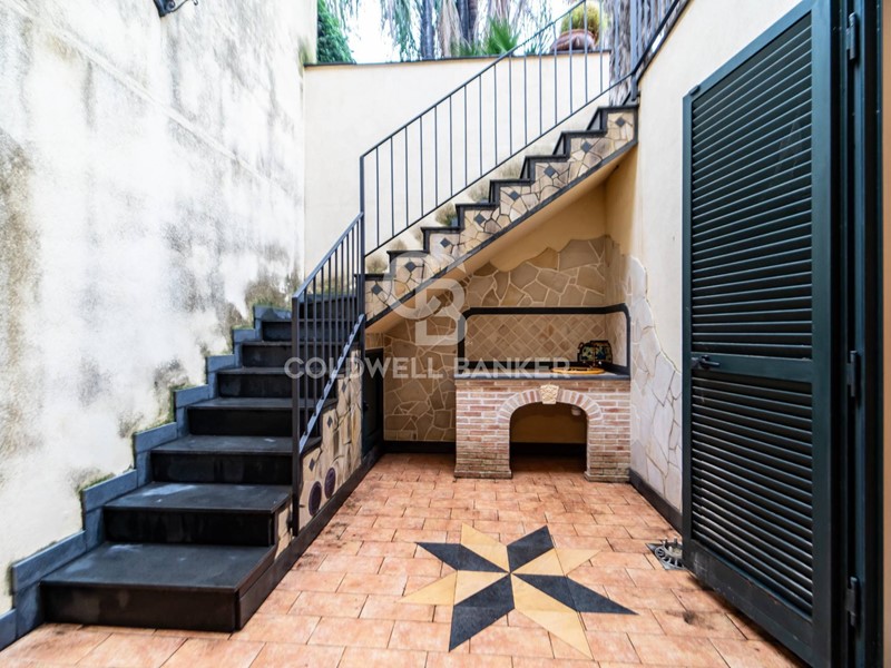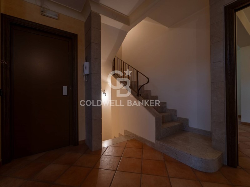 La villa dispone di 3 ingressi indipendenti, ampio giardino di circa 600 mq, piantumato con alberi da frutto e palme ad alto fusto, che consente anche una zona parcheggio esterna molto spaziosa. L'interno dell'abitazione si sviluppa principalmente su 2 livelli composti dal piano terra, a cui si accede ad una grande cucina-soggiorno - con affaccio sul giardino lato interno - bagno con antibagno, soffitti in cartongesso, parete rivestita in pietra di Comiso e scala in travertino, che conduce al piano superiore. Qui troviamo 3 ampie camere da letto con pavimento in parquet di ciliegio, posato in opera a spina di pesce per l'intera superficie, un'ampia sala da bagno in cui sia il pavimento, che il rivestimento delle pareti e della vasca idromassaggio è interamente in marmo rosa, il bagno è dotato anche di una capiente doccia rivestita di mosaico Marazzi.