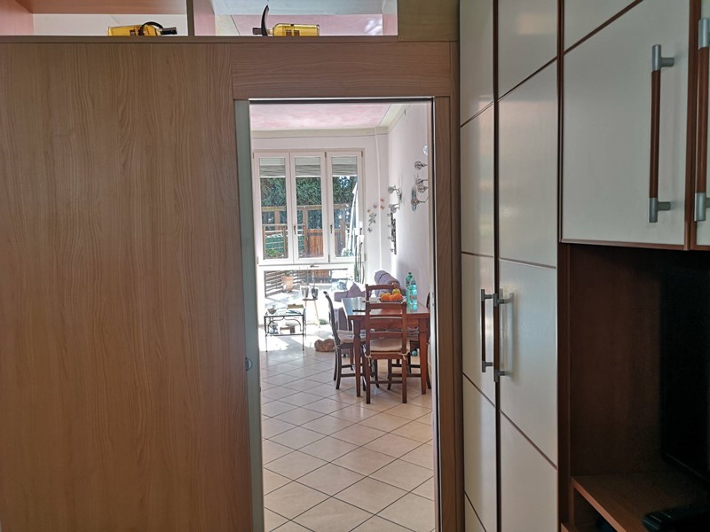 Bilocale di recente ristrutturazione ed arredato, piano terreno parzialmente seminterrato, composto da un vano pluriuso di mq 42 e suddiviso in cucina-pranzo-soggiorno, zona letto, anti-bagno e servizio igienico, completa la proprietà un resede esclusivo pavimentato di mq 22 e posto auto scoperto esclusivo ubicato nel resede condominiale e di fronte-vicino allabitazione; riscaldamento e raffrescamento con pompe di calore, scaldabagno elettrico per acqua calda sanitaria.