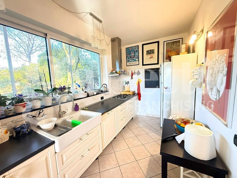 Questa elegante residenza attualmente è suddivisa in due parti ma in base alle necessità si può anche valutare di dividerla ulteriormente facendola diventare una villa trifamiliare.