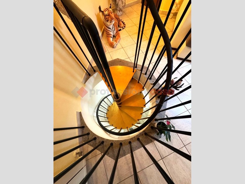 Una scala a chiocciola conduce al sottotetto, praticabile non abitabile, dove sono presenti tre vani versatili, perfetti da personalizzare in base alle proprie esigenze: zona studio, sala hobby, area relax o spazio aggiuntivo per ospiti.