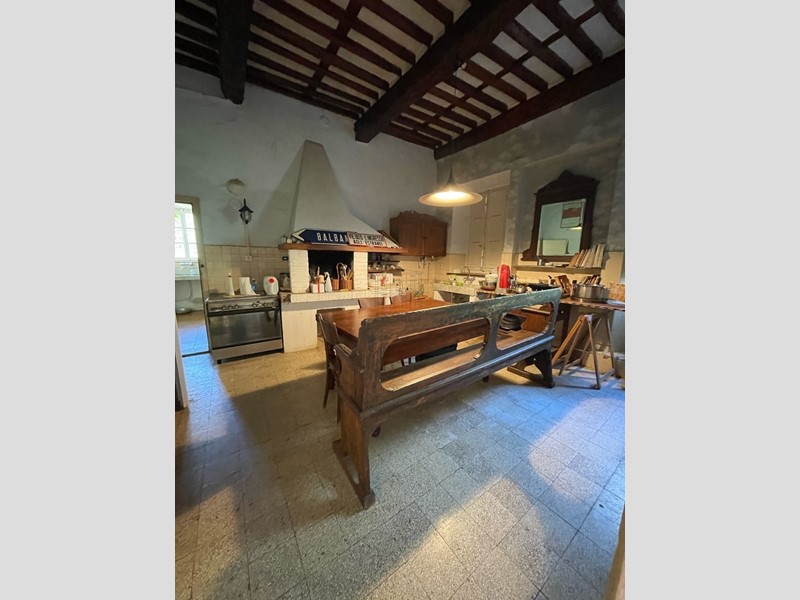 Piano terra: originariamente destinato a cantine e locali di servizio.Piano nobile: accessibile tramite la scenografica doppia scala esterna, ospita circa dieci vani di varia destinazione, caratterizzati da ampi volumi e soffitti alti.Piano secondo (sottotetto): locali di altezza regolare, ideali per realizzare la zona notte o eventualmente una seconda unità abitativa.All’interno della proprietà, in posizione dominante, si trova inoltre un fabbricato accessorio (rudere) di circa 250 mq, con potenziale destinazione residenziale.L’intero complesso necessita di interventi di ristrutturazione, ma offre un raro connubio tra autenticità storica, posizione panoramica e ampie potenzialità di valorizzazione.( foto interne non corrispondenti allo stato attuale).
