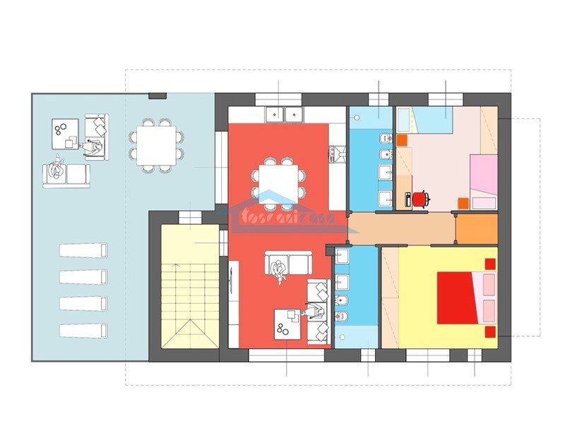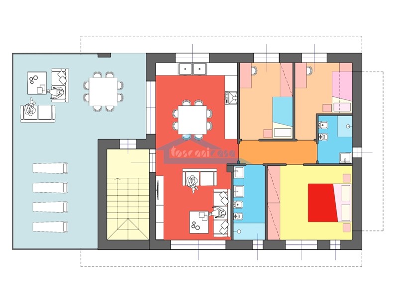 ? Ampia **zona giorno open space** con cucina affacciata sull'ampia Terrazza
