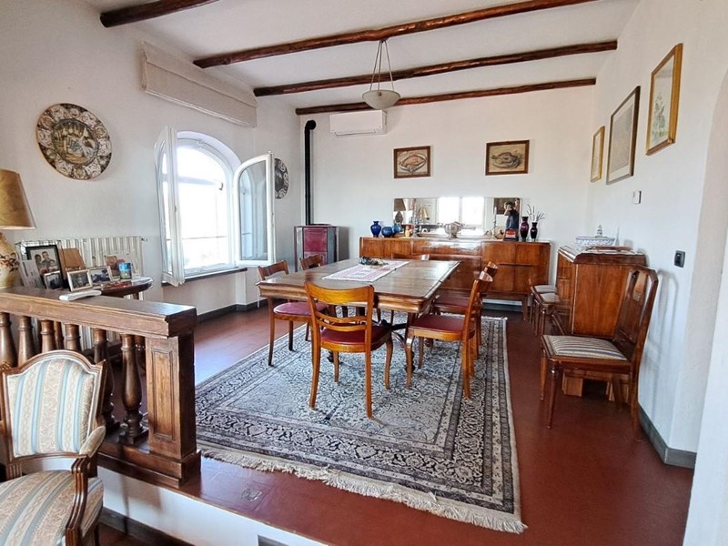 ROSIGNANO MARITTIMO : Nella campagna che guarda il mare vendiamo questa bella villa di pregio singola con ampio terreno recentemente ristrutturata a pochi minuti dal mare e a tutti i servizi del bel borgo di Rosignano Marittimo disposta su due piani, attualmente suddivisa in due appartamenti , l’appartamento principale si trova al piano primo composto da bellissima terrazza ampia e panoramica con progetto in fase di realizzazione di chiusura con bellissime vetrate e con doppio ingresso , ingresso principale che conduce ad un ampio disimpegno dove troviamo una studio/camera- bellissimo ed ampio salone doppio a doppia altezza con camino ed accesso alla terrazza, disimpegno che conduce ad una ampia cucina abitabile con accesso esterno – ad un ampio bagno- alla bellissima e luminosa camera matrimoniale- dall’ingresso saliamo al piano superiore dove troviamo un altro locale soppalco attualmente ad uso studio soggiorno relax con caminetto e con vista nel salone sottostante . Dall’ingresso interno possiamo accedere all’appartamento al piano terreno/seminterrato dove attualmente vive la figlia con la famiglia dove abbiamo una sala, una cucina ampia- 2 camere , ampio bagno con finestra .Si precisa che i due appartamenti hanno ingressi separati ed autonomi. La villa dispone di un ampio GIARDINO di circa 800 mq oltre a terreno di circa altri 8000 mq in parte ad uliveto ed in parte boschivo e seminativo – Esternamente su un lato del terreno esiste parcheggio auto con copertura in legno. La casa dispone di impianti Termoautonomi separati e climatizzazione; Le condizioni della villa sono ottime così come le sue finiture.
